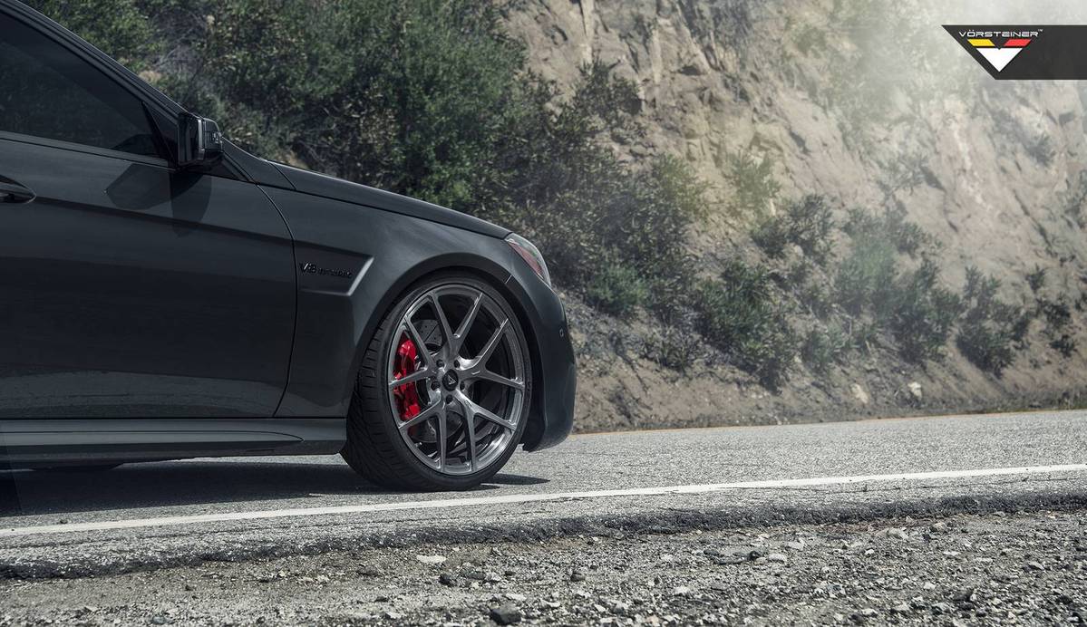 對於這部德國性能猛獸,改裝品牌Vorsteiner則是推出一款型號VSC-101的單片式鍛造輪圈,以手工刷痕煙燻色塗裝現身,尺寸採用前20x8.5J、後20x10J的前後配設定,搭配前255/30R20、後295/25R20的Hankook Ventus V12 EVO高性能跑胎,再換裝短彈簧將車身略為降低,為這部E63 AMG S 4Matic增添不少動感跑格。