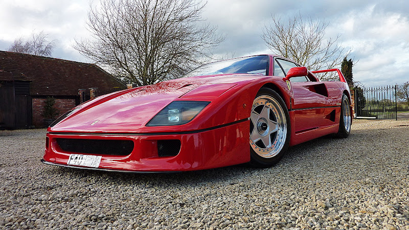 1987年上市的Ferrari F40,採用2.9升V8雙渦輪引擎,最大馬力為478hp,極速可達320km/hr。