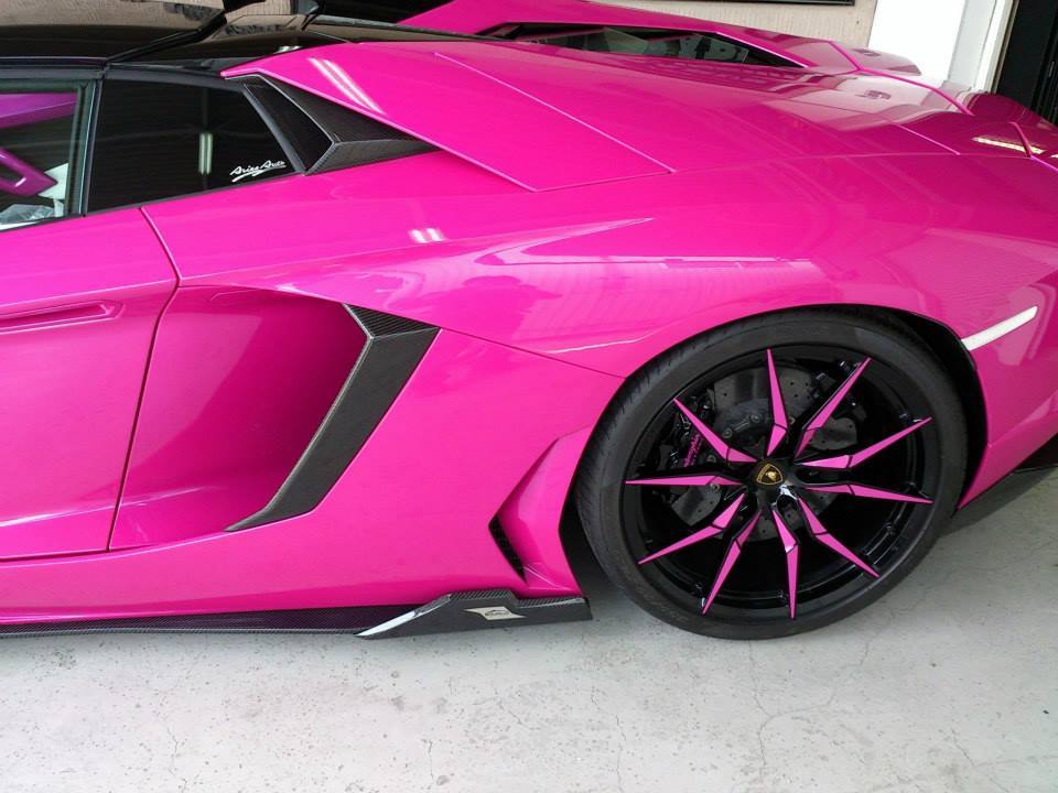 今天帶給各位由日本(Japan)改裝廠VITT Squalo所操刀的粉紅色塗裝Lamborghini Aventador LP700-4 Roadster,換上全新設計的碳纖維前氣壩、前下巴、側裙組、側邊蓋板、後氣壩與後下擾流板等部品,另外將原本亮面黑色烤漆的原廠Dione輪圈施以橘色粉紅色處理,呈現出搶眼無比的視覺效果。