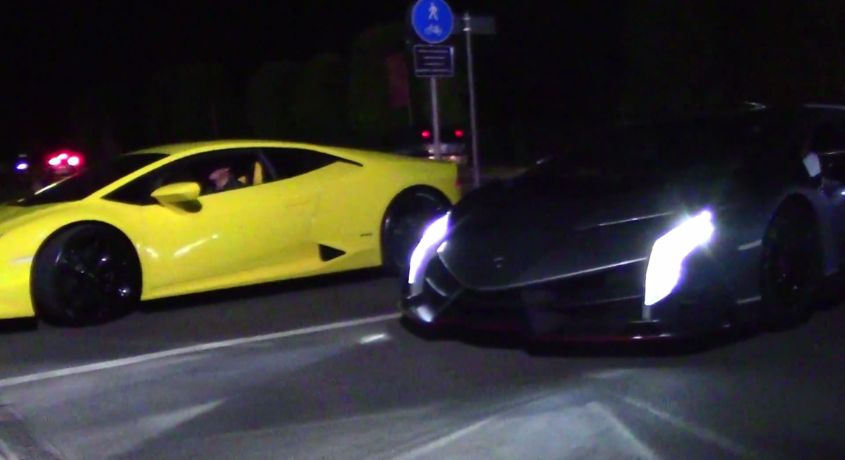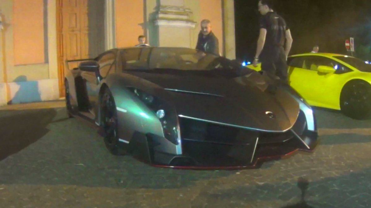 不過,嚴格說起來,地球上存在著共四部Lamborghini Veneno,因為Lamborghini原廠可是有自己保留一部當收藏,而這部紅色版本的Veneno在前幾天被網友356Daly目擊在義大利聖阿加塔(Sant’Agata, Italy)、也就是Lamborghini故鄉的街頭出沒,且身旁還有一部黃色塗裝的Lamborghini Huracán LP610-4。目前,全球尚未有顧客拿到所訂購的Lamborghini Huracán LP610-4 (至少檯面上是如此),所以此時算是相當稀有,但相信在不久的將來,在馬路上看到Lamborghini Huracán LP610-4的機率將會不低,但是要看到Veneno的機會就不多了,而兩部車一前一後在街頭徘徊的畫面,實屬難得,感謝偉大網友提供之實況轉播。