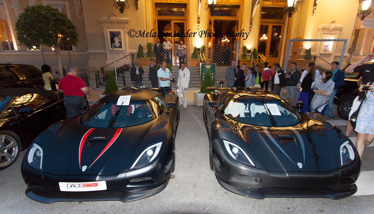 創立於1994年的瑞典(Sweden)超級跑車品牌Koenigsegg向來不走大規模生產路線,而是持續朝打造全球最速車款的宗旨前進。在過去,中文音譯為科尼賽克的他們曾經以Koenigsegg CCR繳出387.87km/hr的極速成為當時全球最速量產車,隨後便在2011年推出普遍被認為是Koenigsegg CCR車系的後繼車款Koenigsegg Agera車系,其中入門版本的Agera搭載5.0升渦輪增壓V8引擎,最大馬力為940HP,百里加速僅需3.0秒、極速可達410km/hr,已屬相當強悍。然而,若想與馬力動輒超過1,000HP的法國超級跑車Bugatti Veyron一較高下,普通版本Agera的動力依然稍嫌不足,因此Koenigsegg隨後便新增進階版本的Koenigsegg Agera R車款,搭載獨立開發的5.0升V8雙渦輪增壓引擎,最大馬力可達1,140HP,扭力峰值有122.4kgm,輔以與Cima合作研發、重量僅81公斤的七速雙離合器變速箱,百里加速僅需2.8秒便可完成、由靜止加速至時速200km/hr僅需7.5秒、衝刺達時速300km/hr更只需要21.19秒,極速則是上看442km/hr。由於Koenigsegg幾乎以客製化流程組裝每部車輛,除了耗時費工外,數量也相當稀少,而要同時看見兩部Koenigsegg出現在街頭的機會相當渺茫,但攝影專家Melanie Meder Photography今天要與大家分享她在摩納哥(Monaco)所拍到的畫面。眼前兩部超級跑車都是Koenigsegg Agera,然而消光黑色的那部是全球僅有一部的Koenigsegg Agera X,由於車主要求,當時將最大馬力刻意調降成較小的910HP,但依舊有3.1秒破百、極速398km/hr的堅強實力,而在Koenigsegg Agera X身旁的則是部正港的Koenigsegg Agera R。
