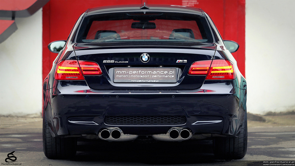 這是由改裝廠MM Performance所操刀的黑色塗裝BMW E92 M3,外觀幾乎保持著原廠狀態,動力部分則是植入來自ESS、代號VT2-625的機械增壓系統,另外透過電腦程式改寫、進氣系統強化與Eisenmann高性能排氣管換裝,將最大馬力提升至600HP,扭力增強至57.8kgm,進步幅度相當明顯。內裝部分,如同外觀扮相,幾乎維持原廠配置,僅有加裝的監控儀表能嗅出一絲改裝味。