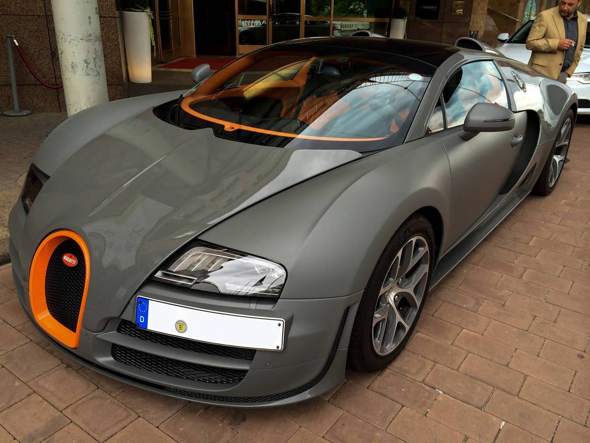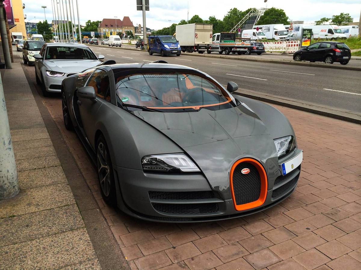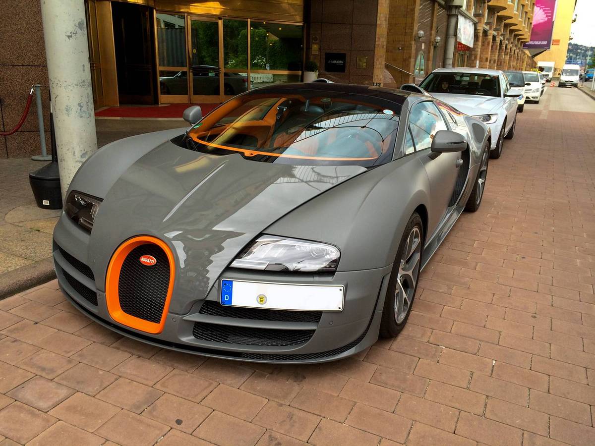 各位想必還記得,大約在一年多以前,法國超級跑車廠Bugatti以Veyron Grand Sport Vitesse創下高達408.84km/hr的紀錄而成為全球最速敞篷車款,而隨後便特別量產名為Bugatti Veyron Vitesse World Record Car的特仕車款,而簡稱為Bugatti Veyron Vitesse WRC的他,車身採用黑色塗裝為主軸,並且在輪圈、頭燈周邊、水箱罩與內裝部分穿插著亮橘色元素,辨識度極高,且全球限量僅八部的配額早已銷售一空。然而,如果顧客專程飛去法國莫爾塞姆(Molsheim , France)的Bugatti工廠研擬,打造出一部獨一無二的Veyron並非難事,而今天要帶給各位一部網友於Porsche故鄉、德國斯圖加特(Stuttgart, Germany)街頭所擄獲的Bugatti Veyron Grand Sport Vitesse,車身採用消光與亮面交織的灰色塗裝為主軸,再搭配橘色飾條環繞車身,別具風味。