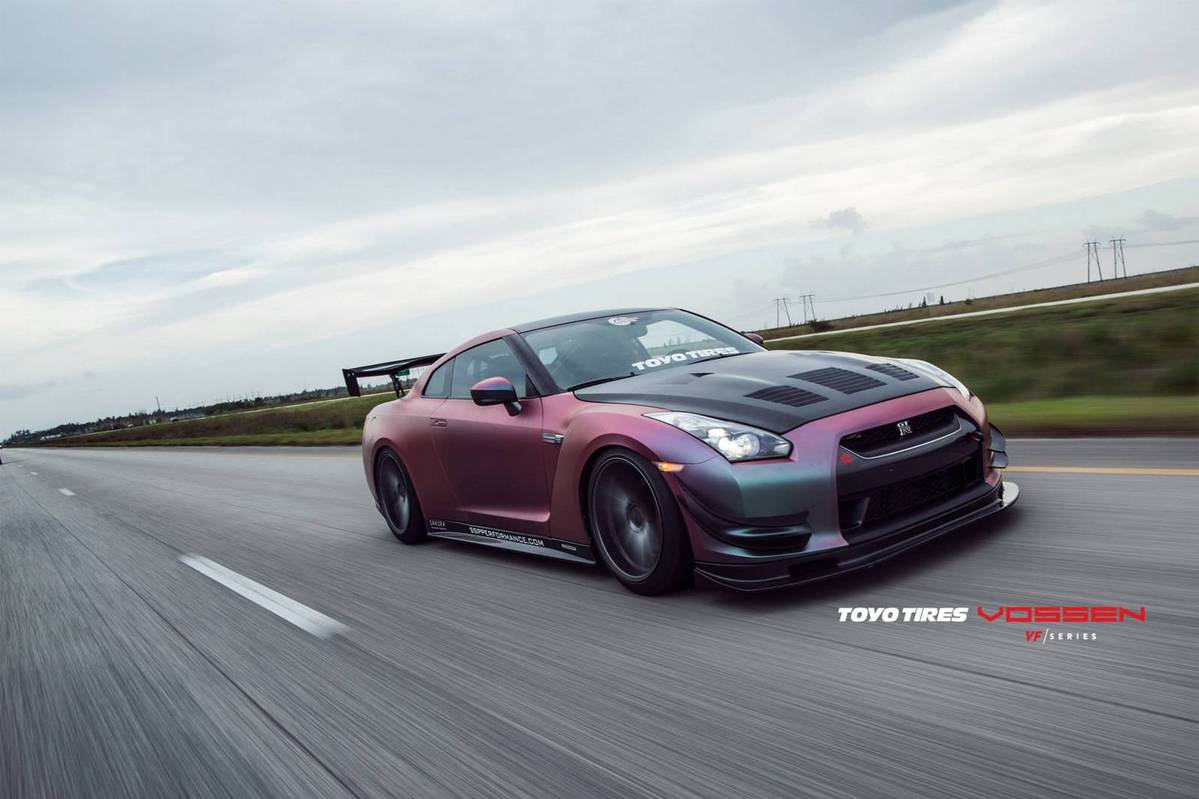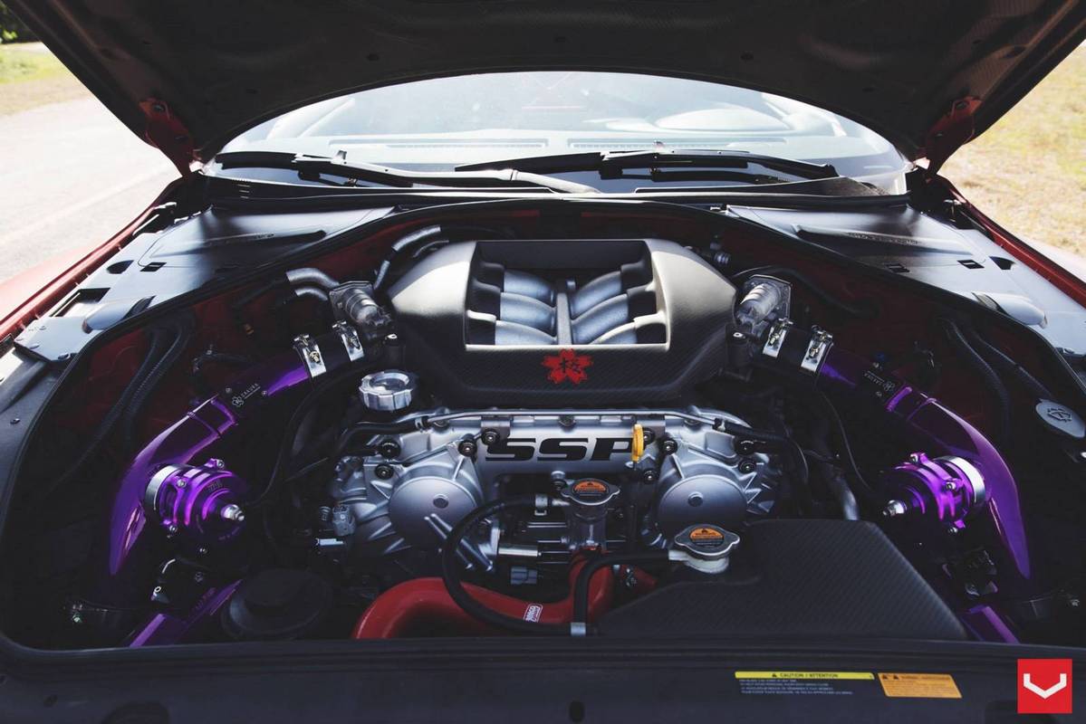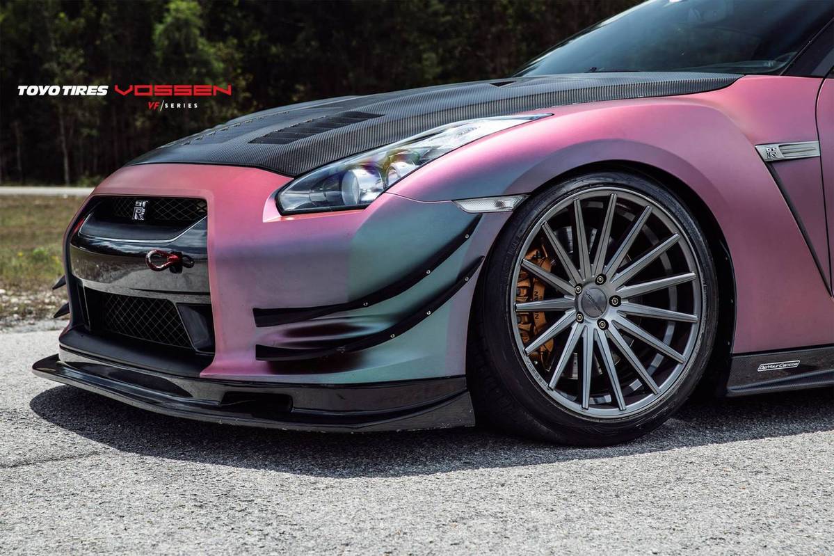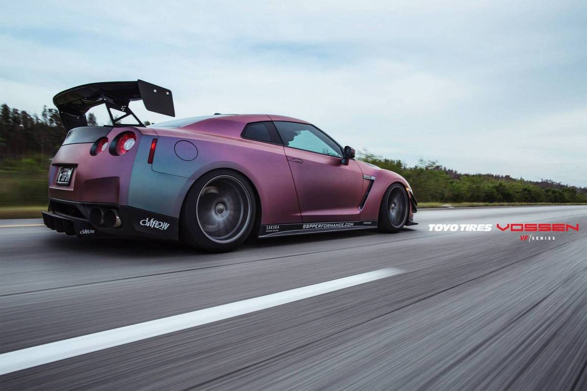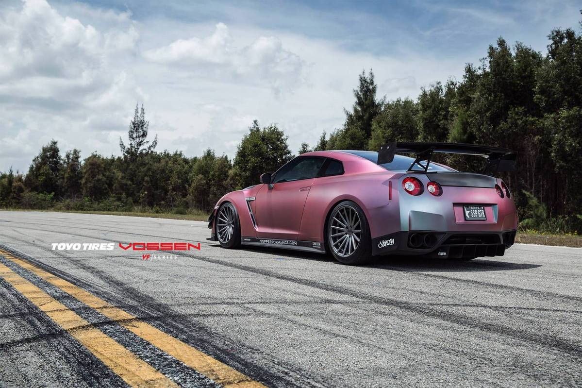這是由輪圈品牌Vossen Wheels所提供的Nissan R35 GT-R,除了換上後輪驅動套件以外,還同時換裝高性能排氣管、強化型中央冷卻器、高效率進氣系統與1,000cc噴油嘴等部品,再將電腦程式重新改寫,使得這部初期型Nissan R35 GT-R的最大馬力提升至620HP,扭力增強至82.5kgm,而為了讓動力順暢傳輸到後軸,改裝廠也換上強化型離合器與變速箱油冷卻系統同時更改限滑差速器的鎖定比率,再搭配競技版本可調式避震器、尺寸達400mm的前煞車碟盤、Whiteline車身拉桿組與Carbotech XP-16煞車來令片等,徹底將操控性能提升。