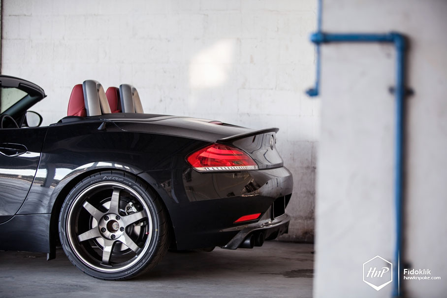 今天要帶給各位的便是一部小改款後、黑色車身搭配紅色內裝的BMW E89 Z4 sDrive20i,由知名媒體Hawk n Poke所提供,選用來自日本大廠Rays、型號TE37SL的輕量化輪圈與Yokohama Advan Neova AD08高性能跑胎,再搭配KW V3高低軟硬可調式避震器組,強化業已不錯的操控性能。另外,這部上空小跑車加裝了來自3D Design的前下巴,使得車頭氣勢增強不少,而為了讓所搭載的2.0升渦輪增壓四缸引擎能夠較有效率地發揮,改裝廠選用Meisterschaft高性能排氣管。雖然這部並非E89 Z4陣容中最強悍的sDrive 35is版本,但是其N20新引擎所能達到的節能效益不啻為油價偏高時代的優質選擇,畢竟,這種雙人座小敞篷跑車的最大目的,應該還是以迎風徜徉為主。