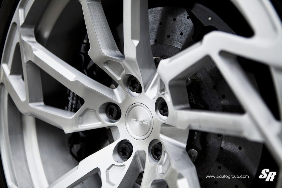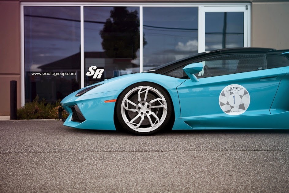 今天帶給各位改裝團隊SR Auto Group為了要參加即將開跑的Diamond Rally路跑活動所推出的Lamborghini Aventador LP700-4 Roadster,足登PUR Wheels出品、型號RS05的輕量化輪圈,造型有些神似概念車款Lamborghini Egoista亮相時所裝的輪圈,尺寸為前20x9J、後21x12.5J的前後配設定,圈面以亮面銀色處理,配在亮眼的淡藍色塗裝車身上,絕對是路上視覺焦點。
