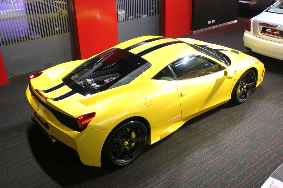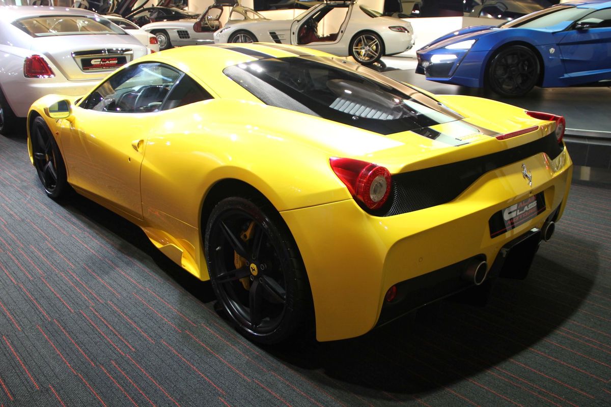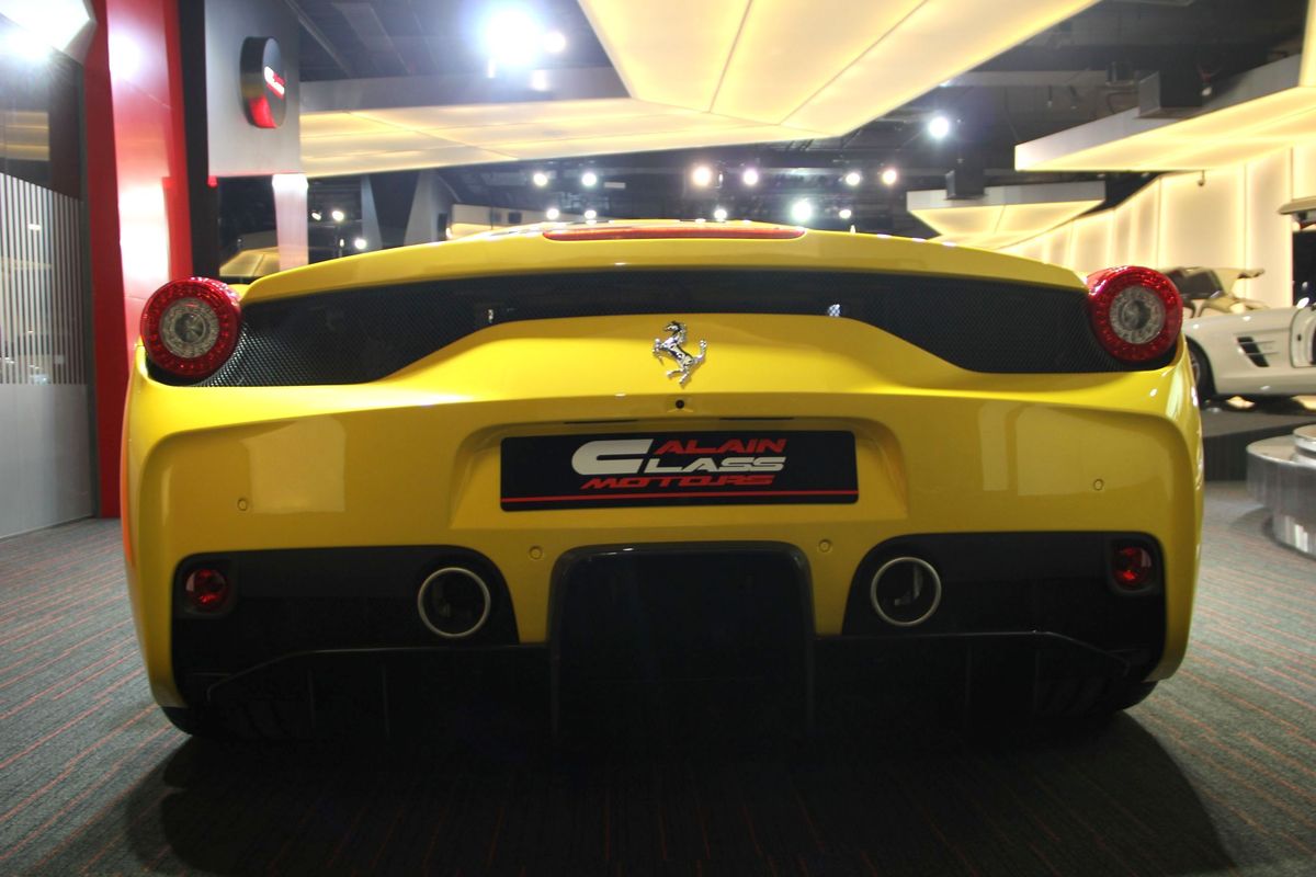 今天帶給各位由杜拜(Dubai)知名車商Alain Class Motors所提供的Ferrari 458 Speciale,該車為Giallo Modena黃色塗裝搭配黑色銀邊NART車身飾條,內裝採用與外觀相襯的黑黃雙色配置,連同煞車卡鉗也以黃色塗裝現身,整體感十足。了解市場的讀者想必知道,若此時此刻才想要訂購Ferrari 458 Speciale,本地代理商幾乎沒有配額可提供,因此出現難得釋出的機會,就應當好好把握。
