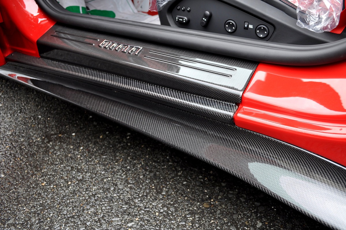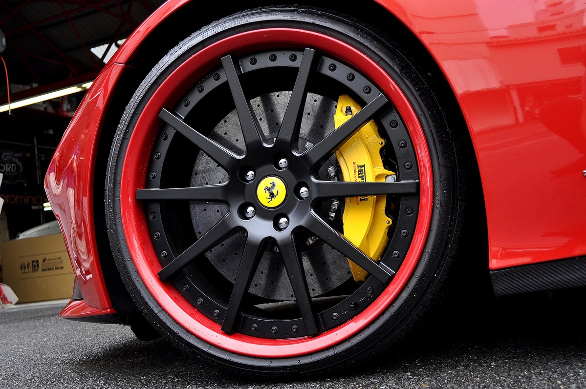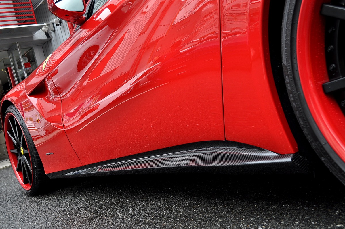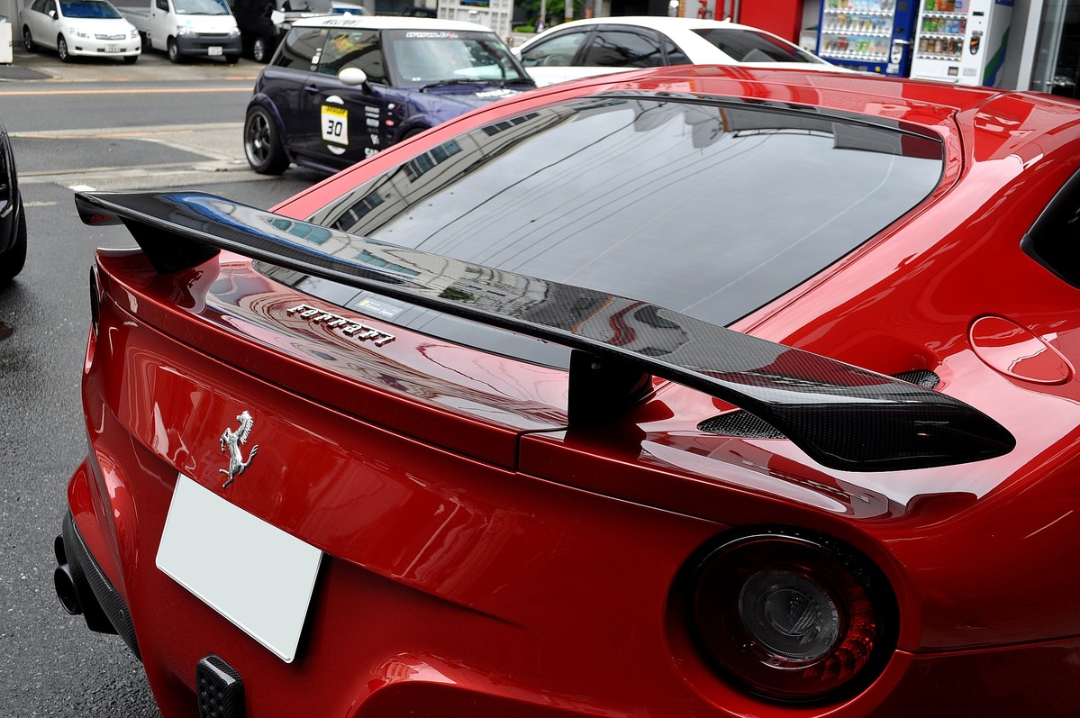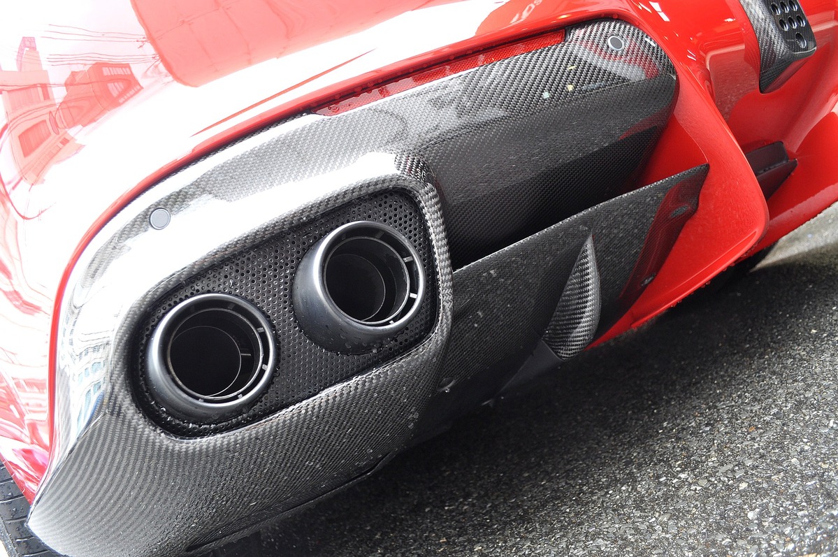 今天帶給各位由集團位於大阪的分公司Bond Osaka所操刀的義大利超級跑車Ferrari F12 Berlinetta,換裝來自RevoZport的碳纖維前下巴、後下擾流板與側裙組,再搭配御用品牌Novitec Rosso的碳纖維後擾流尾翼與燻黑尾燈組,輪圈則是選用Hyper Forged Wheels出品、型號HF-10的輕量化款式,尺寸為前21x9.5J、後22x12J的前後配設定,中心施以黑色塗裝,外圈則以與車身相同的紅色烤漆處理,搭配前255/30R21、後335/25R22的Continental Sport Contact 5P高性能跑胎。