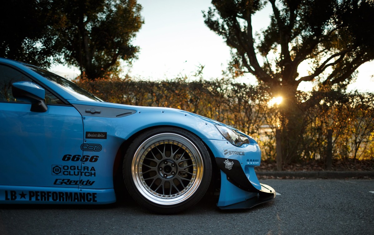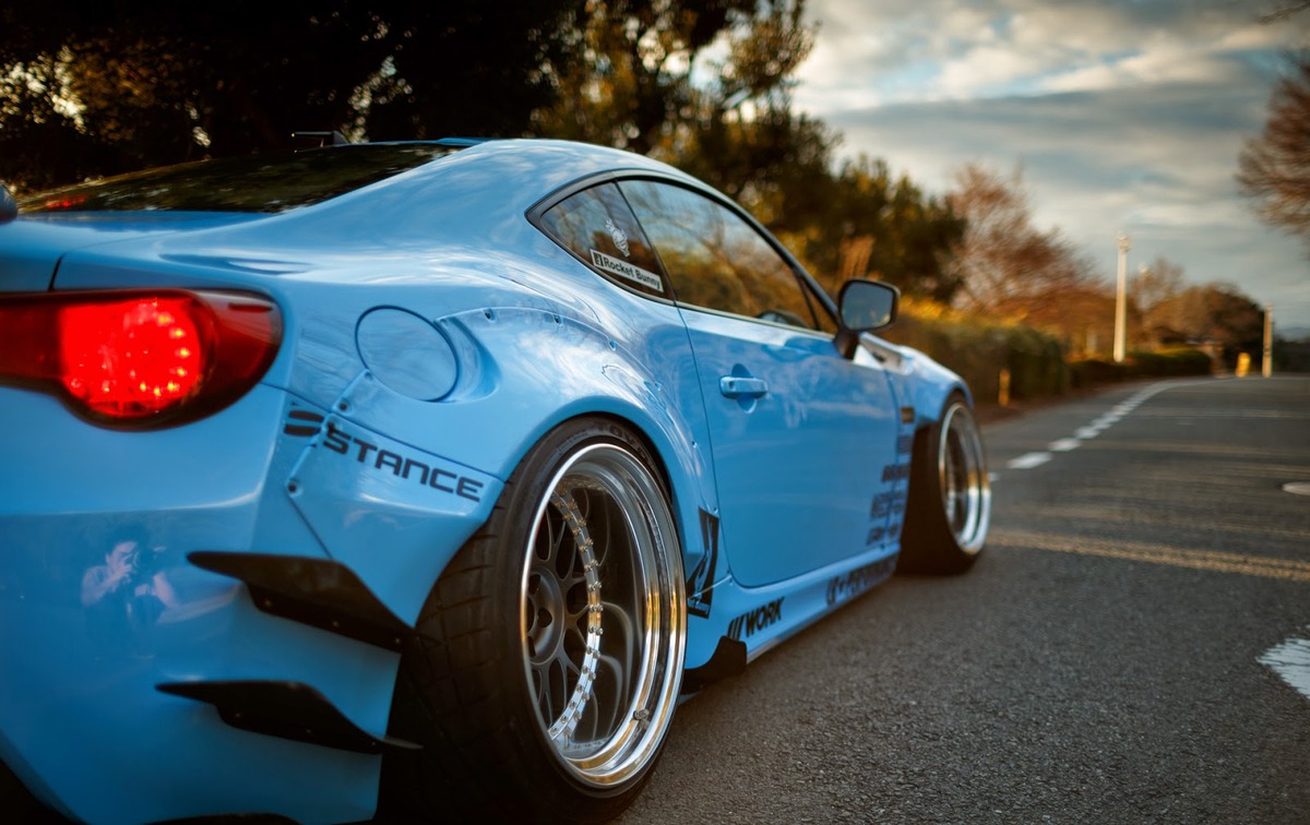 今天帶給各位一部吸睛度百分百的Toyota 86,配有Rocket Bunny剛發表不久的第二代寬車體空力套件,包含全新設計的前保桿、前下巴、側裙組、後下擾流版與造型特殊的後擾流尾翼等部品,輪圈選用日本品牌Work的樹枝狀款式搭配Toyo R1R高性能跑胎,再透過高低軟硬可調式避震器組的換裝將車身降得貼地,配合其吸睛的淡藍色車身,展現出品味獨特的日式改裝風格。