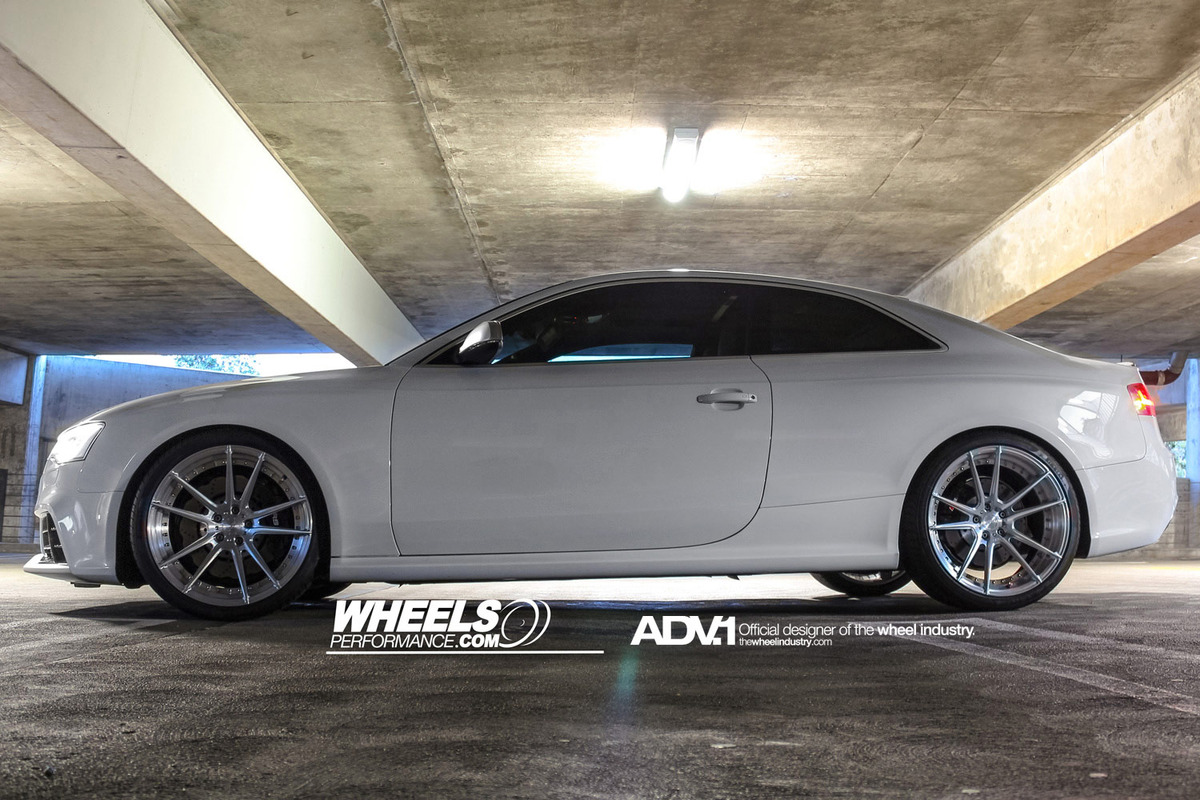 今天帶給各位的是一部由輪圈品牌ADV.1 Wheels所提供的白色塗裝小改款Audi RS5雙門跑車,換裝型號ADV5.2 MV2 SL的輕量化輪圈,圈面採用手工刷痕處理,四顆尺寸均為20x10J,另外透過高低軟硬可調式避震器組將車身降低,即使外觀部分大致上維持原廠設定,依然展現出十足的跑格。