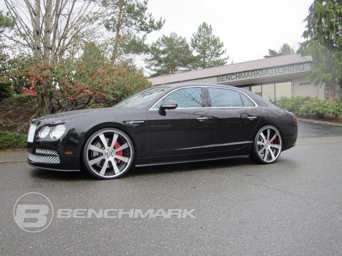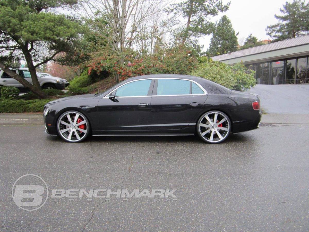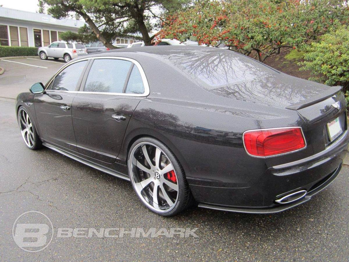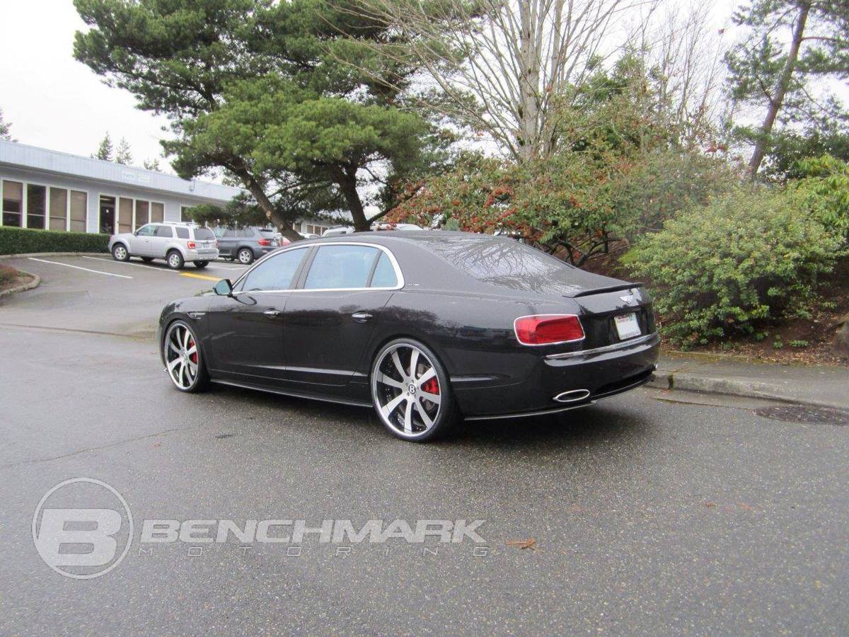 今天帶給各位由美國(USA)改裝廠Benchmark Motoring所推出的2014年Bentley Flying Spur W12,為了與其霸氣修長的黑色車身搭配,店家選用來自Savini Wheels、型號SV-28的24吋輕量化雙色輪圈,同時加裝碳纖維前下巴、側裙組、小鴨尾翼與後下擾流板等部品,增添這部英國豪華房車的動感氣勢。