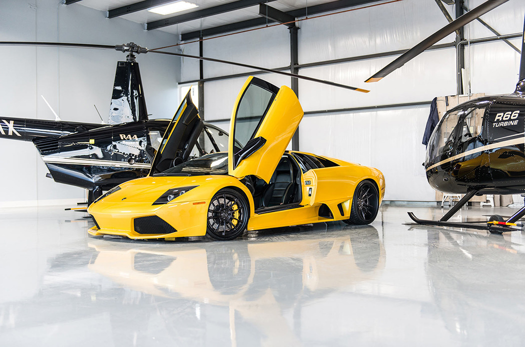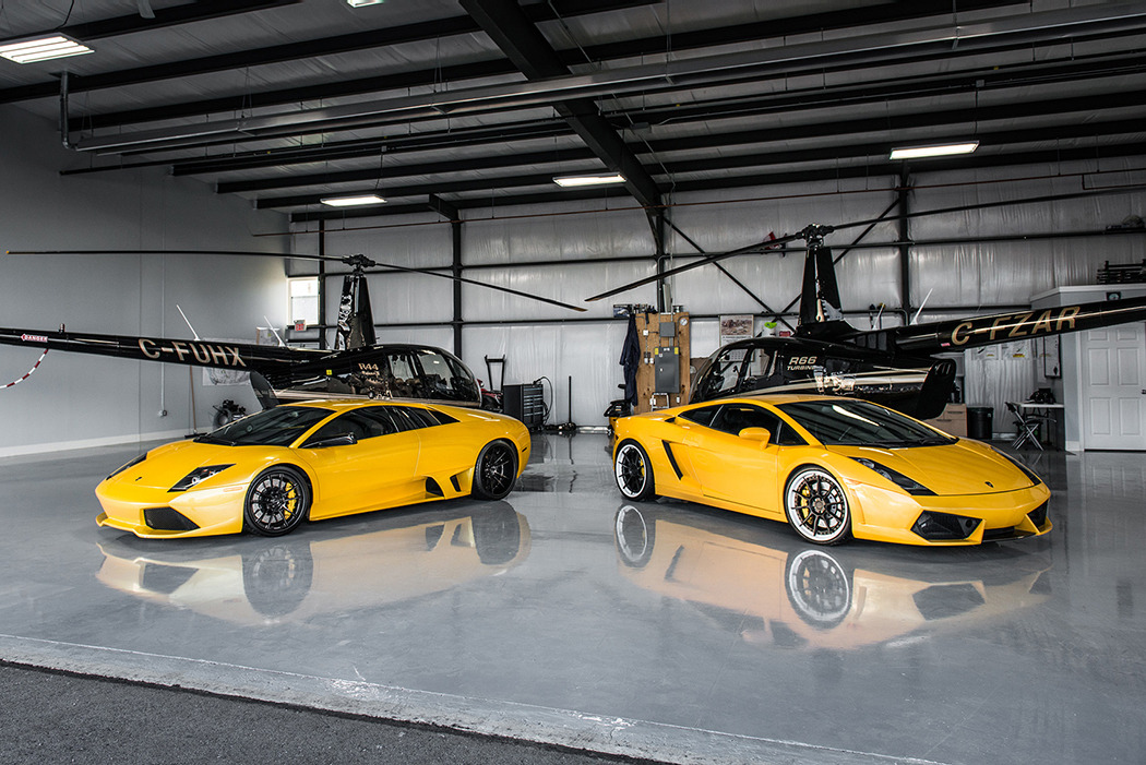 感謝攝影專家Mike Boldt Photo提供兩部經典Lamborghini車款於直升機旁的精美照片。