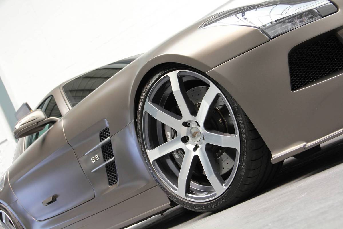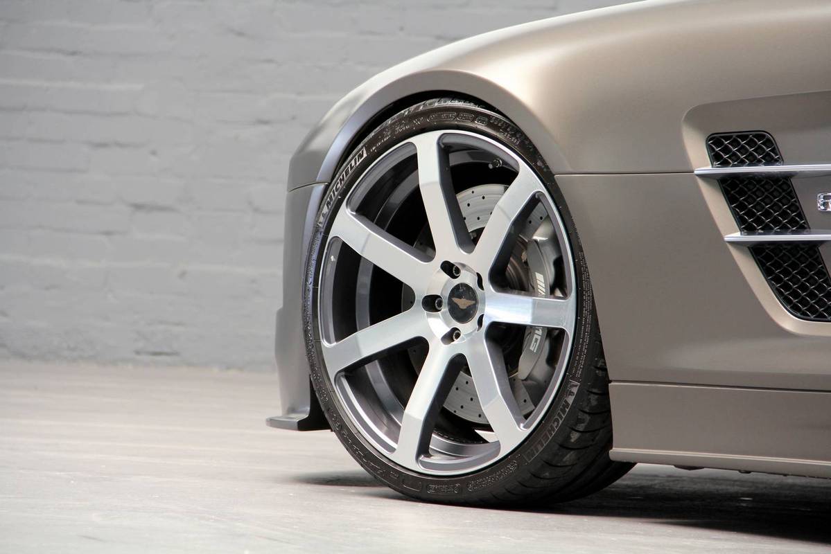 正當後繼車款Mercedes AMG GT呼之欲出的時候,德國改裝廠DD Customs以一部現行款式、消光銅色塗裝的Mercedes Benz SLS AMG為基礎、推出一部完整改裝作品。首先,DD Customs為這部已經停產的鷗翼超跑換上全新設計的空力套件,包含前保桿、側裙組、後保桿與後下擾流板等部品,另外選用Corniche Sports Wheels的多幅式前20吋、後21吋輪圈,尺寸為前20x9J、後21x10.5J的前後配設定,搭配前265/30R20、後295/25R21的高性能跑胎,同時換上來自避震器名廠KW的高低軟硬可調式避震器組,能夠將車身降低約40mm,輔以更貼近地面的側裙與前保桿,讓這部SLS AMG散發出更濃烈的跑格。
