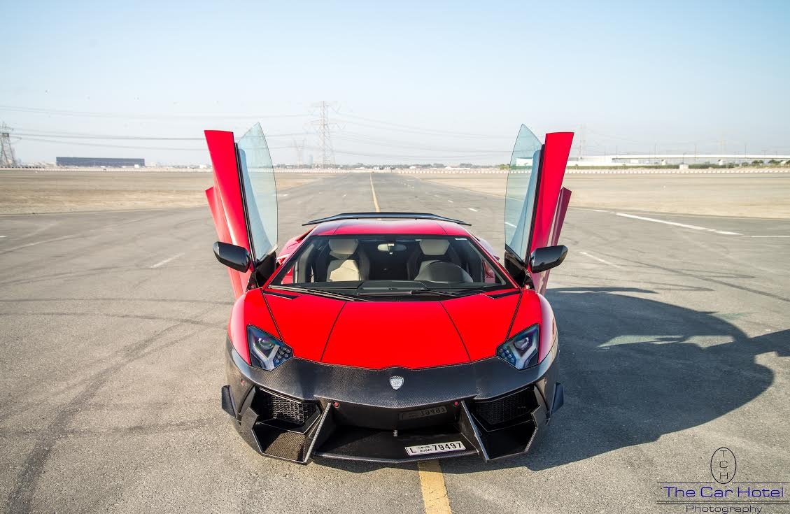 今天帶給各位由Thecarhotel Photography所拍攝的紅色塗裝Lamborghini Aventador LP700-4,全車換裝來自DMC、型號「LP900-4 SV Limited Edition」空力套件,包含碳纖維前保桿、側裙組、後下擾流板與後擾流尾翼等部品,而其碳纖維紋路與紅色車身相配,造就了十足兇猛的扮相。