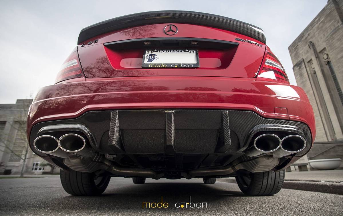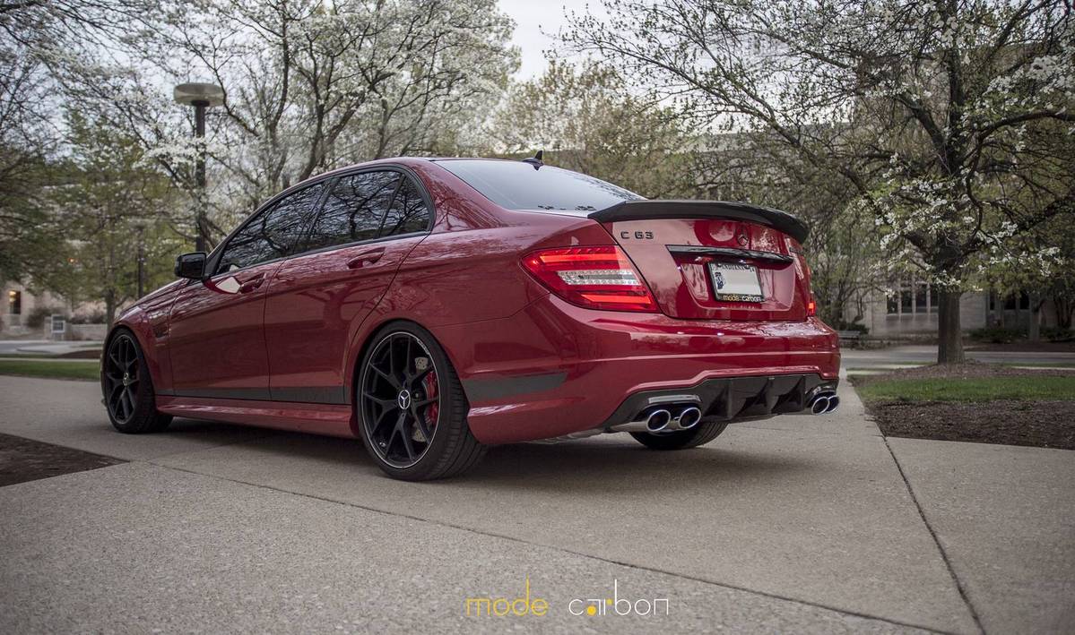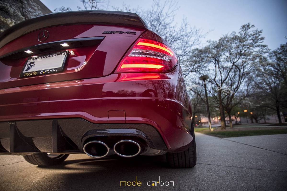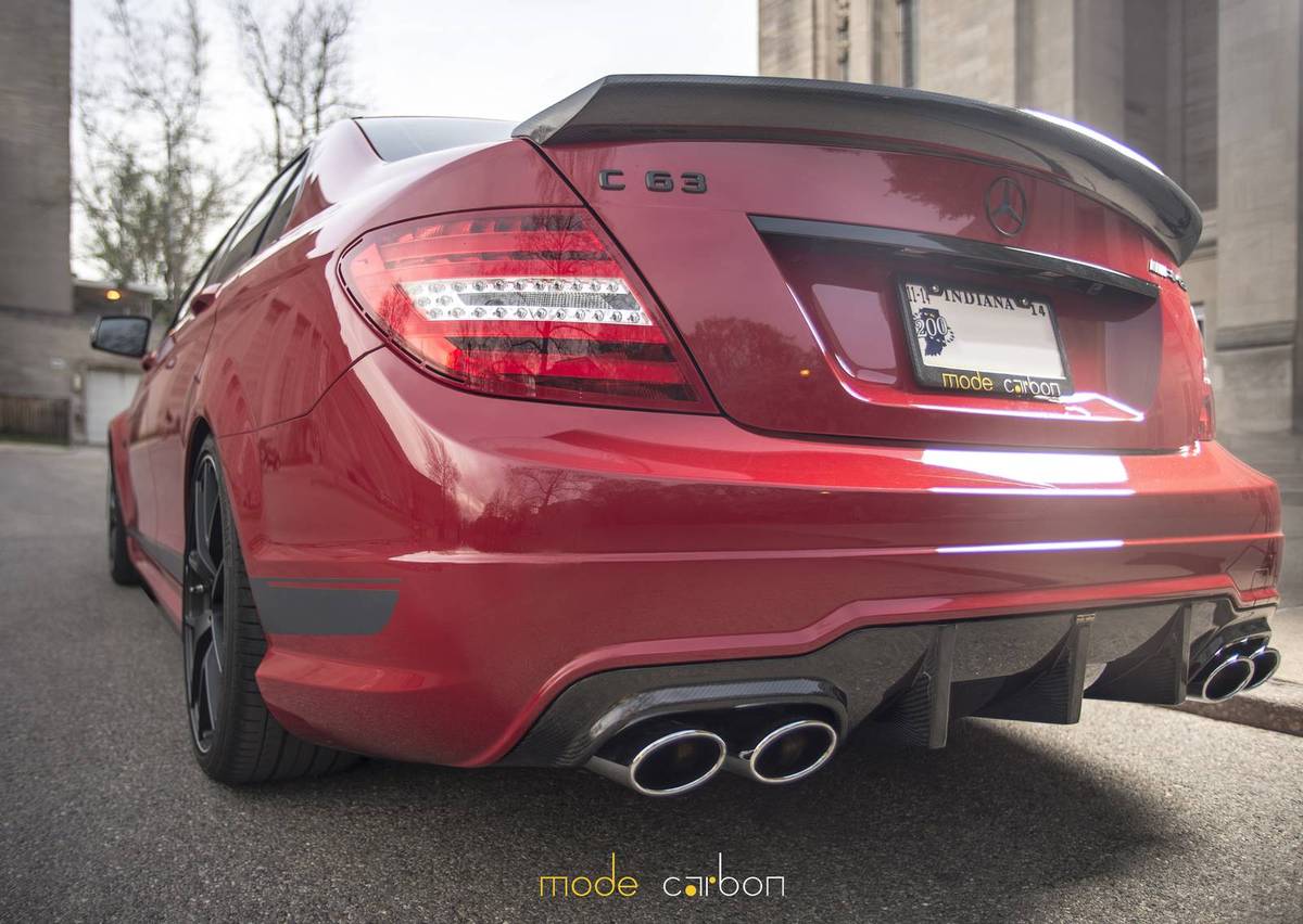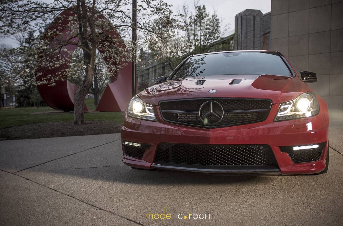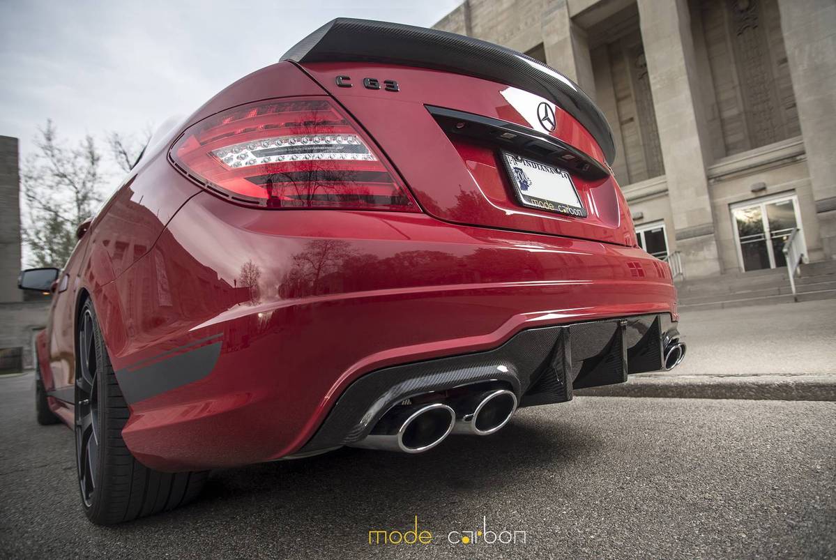 今天帶給各位由改裝品牌Mode Carbon所操刀完成的紅色塗裝Mercedes Benz C63 AMG Edition 507,加裝碳纖維前下巴、後下擾流板與後上擾流小鴨尾翼等部品,配上Edition 507專屬的開孔式引擎蓋,另外換裝KW V3高低軟硬可調式避震器組將車身降低,沿用Edition 507原廠鍛造輪圈,讓這部四們高性能房車顯得殺氣騰騰。