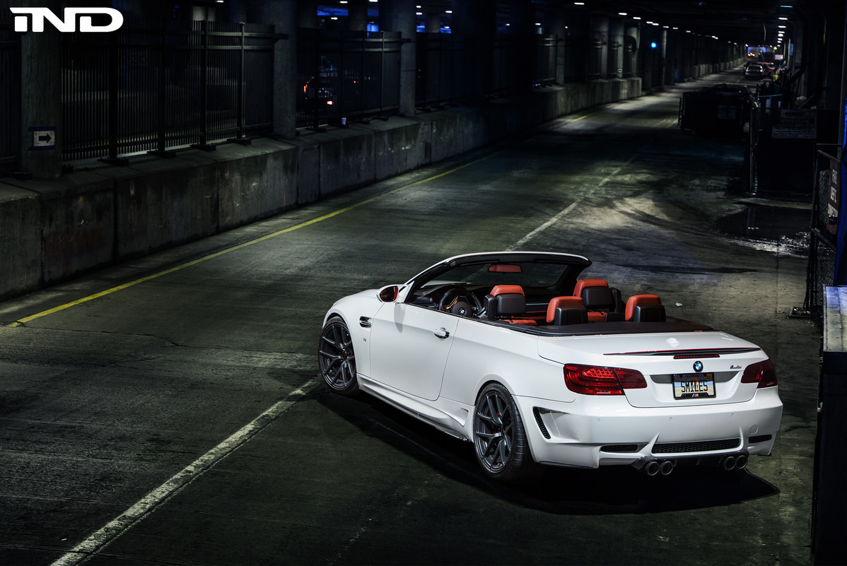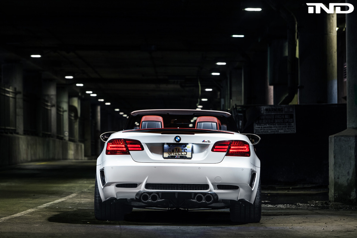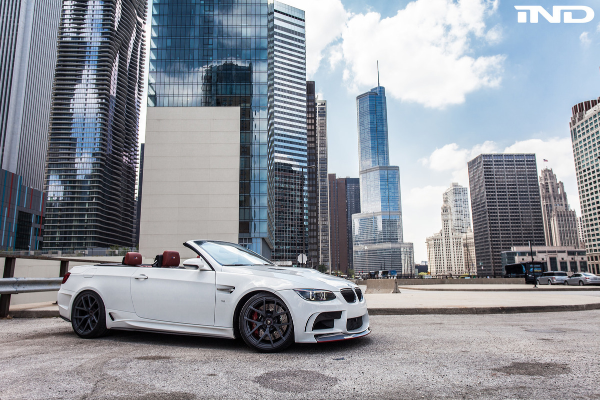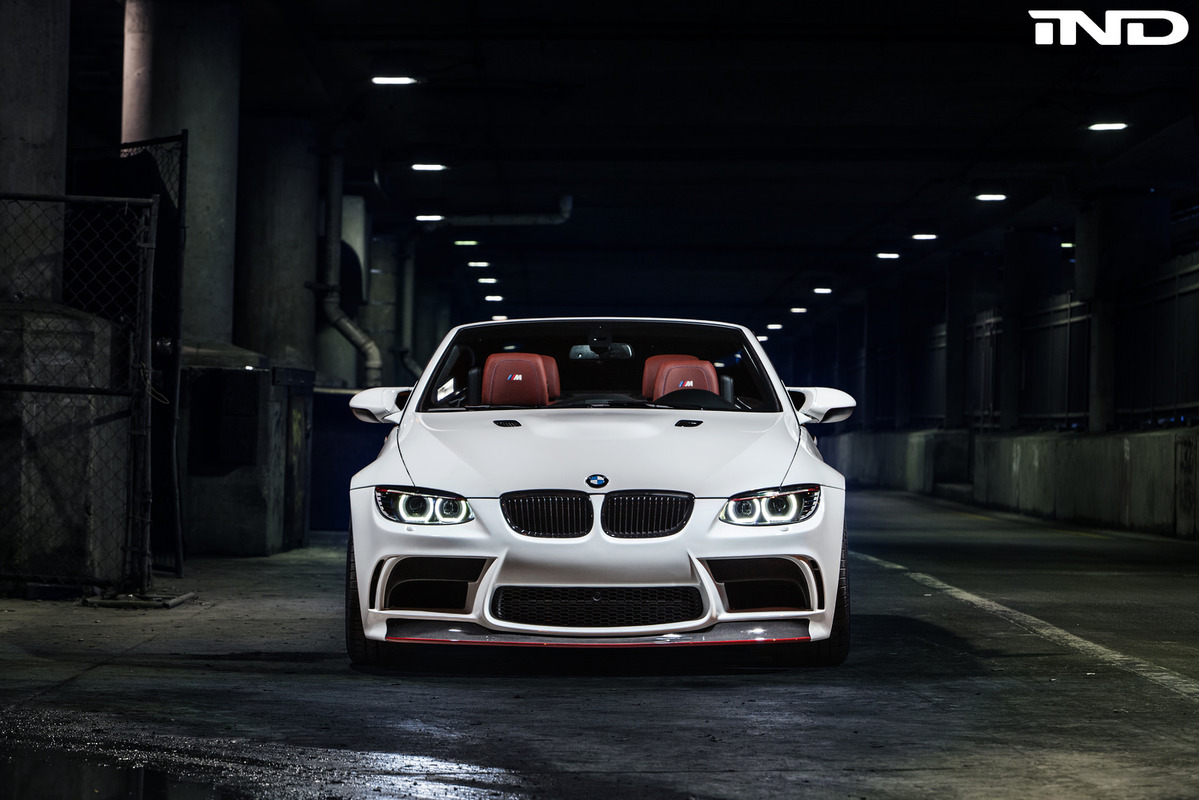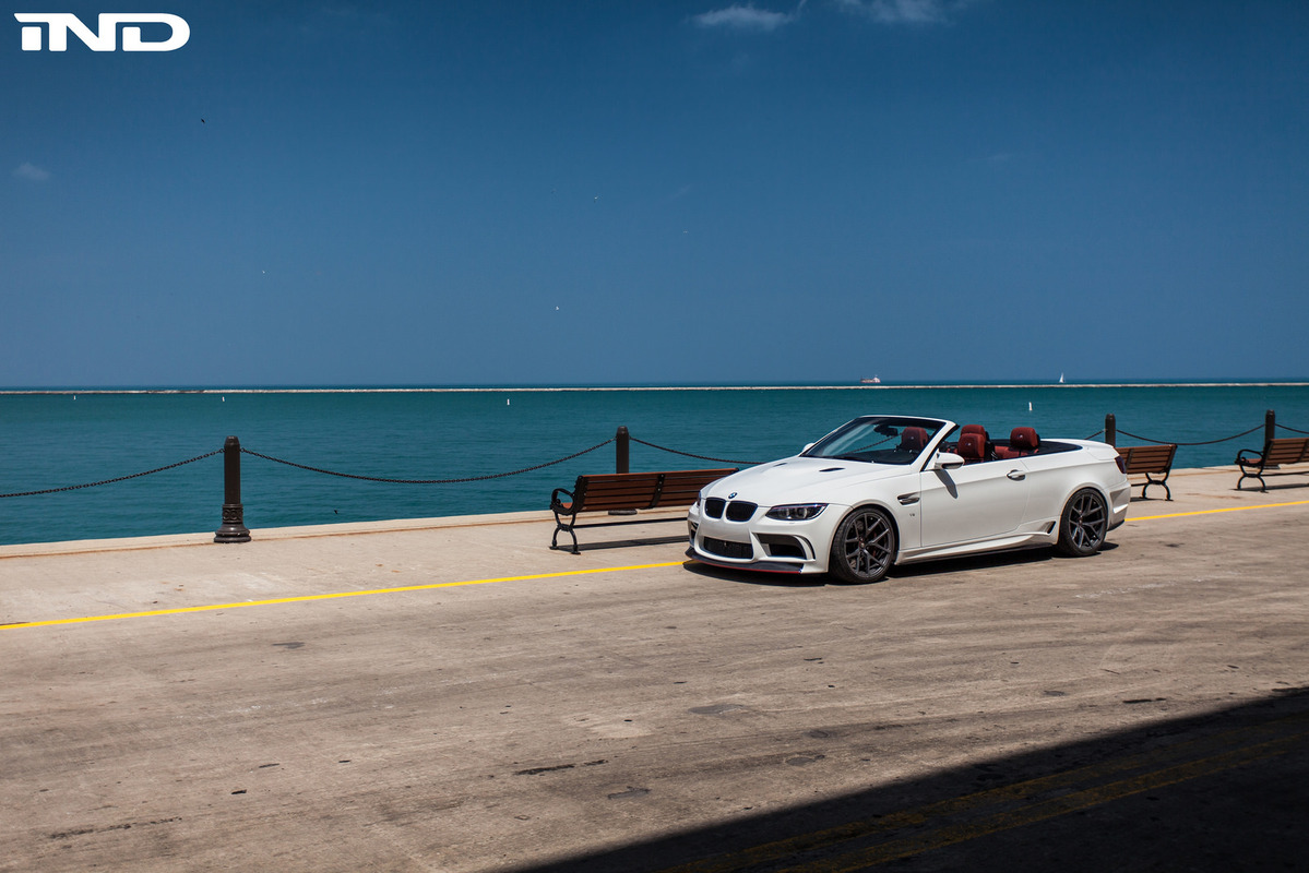 今天帶給各位由改裝廠iND Distribution所操刀的白色塗裝BMW E93 M3敞篷跑車,外觀換上Vorsteiner GTS5版本前保桿、Gintani碳纖維側裙組、開孔式樣後保桿與Vorsteiner Type II後下擾流板等部品,同時將碳纖維前下巴下緣施以紅色處理,呼應酒紅色真皮包覆之原廠運動型座椅。