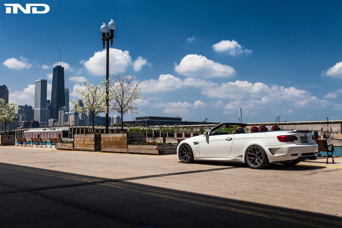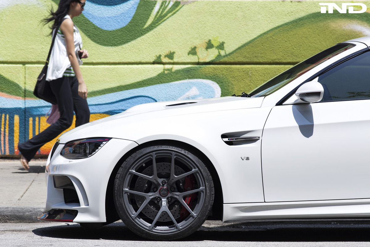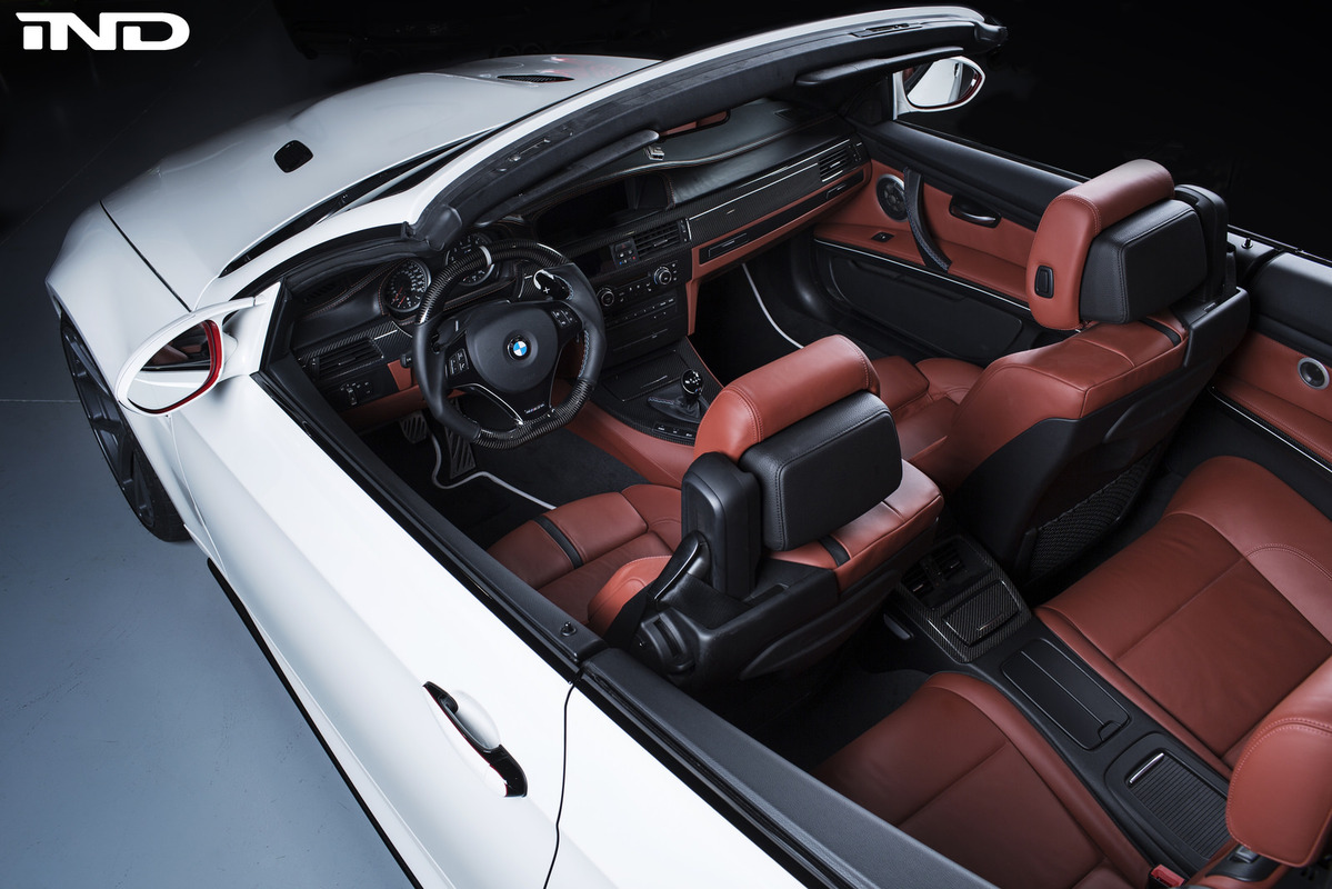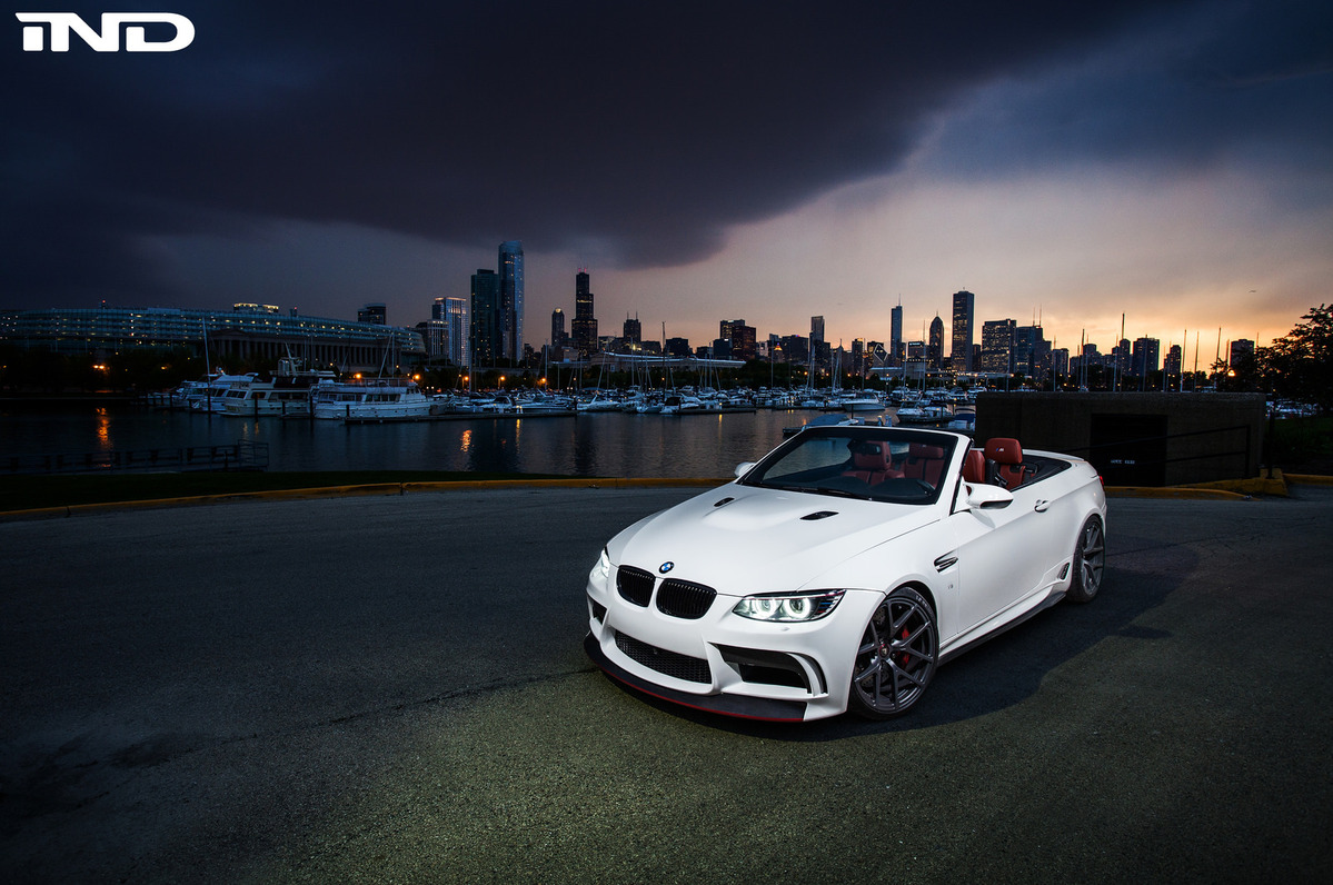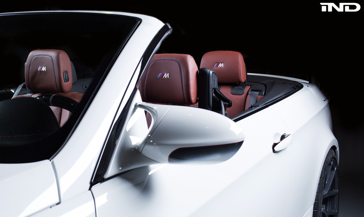 今天帶給各位由改裝廠iND Distribution所操刀的白色塗裝BMW E93 M3敞篷跑車,外觀換上Vorsteiner GTS5版本前保桿、Gintani碳纖維側裙組、開孔式樣後保桿與Vorsteiner Type II後下擾流板等部品,同時將碳纖維前下巴下緣施以紅色處理,呼應酒紅色真皮包覆之原廠運動型座椅。