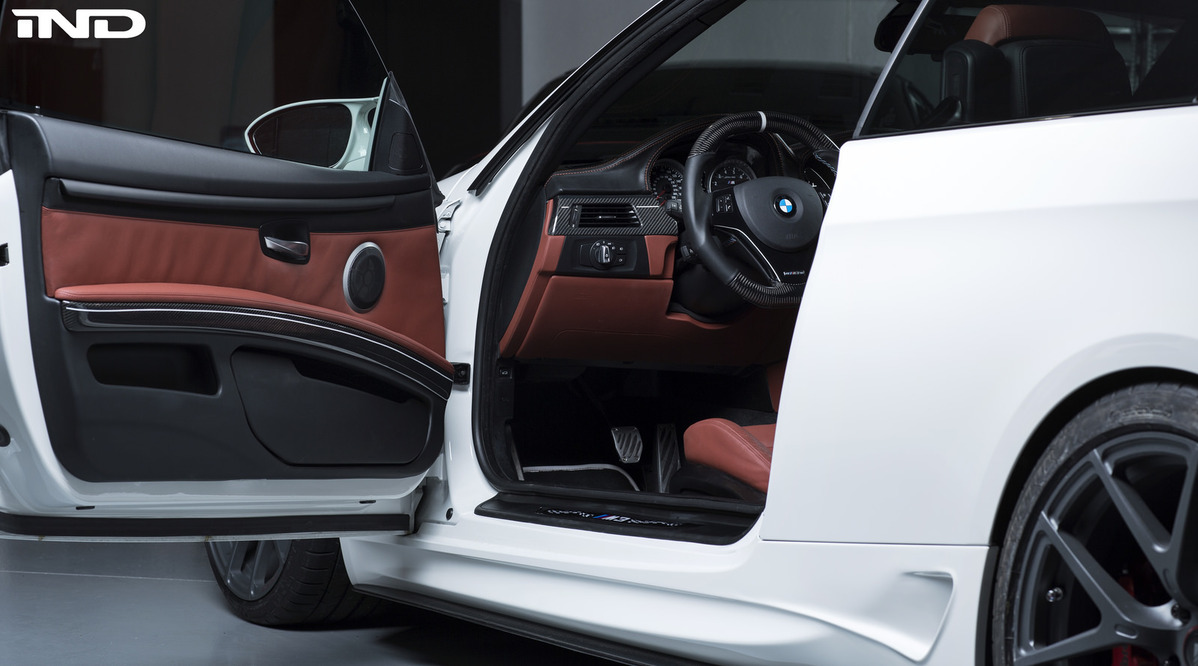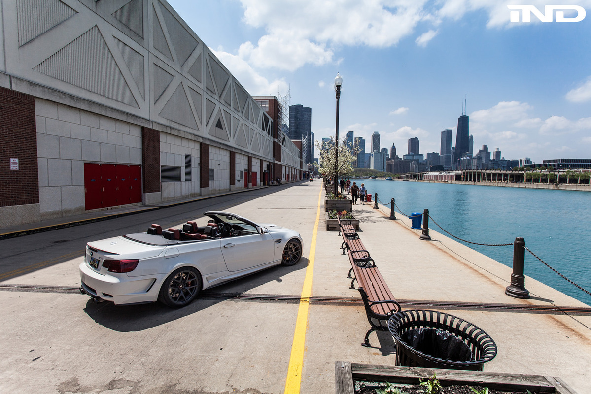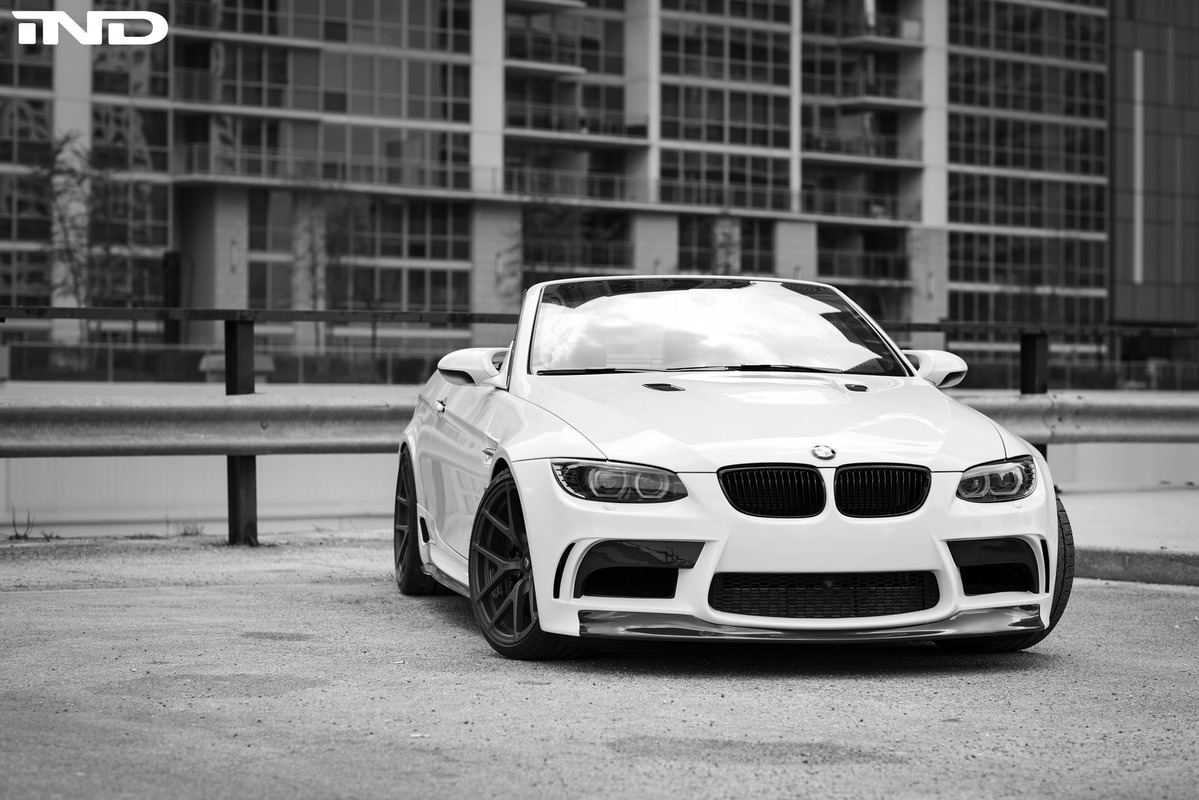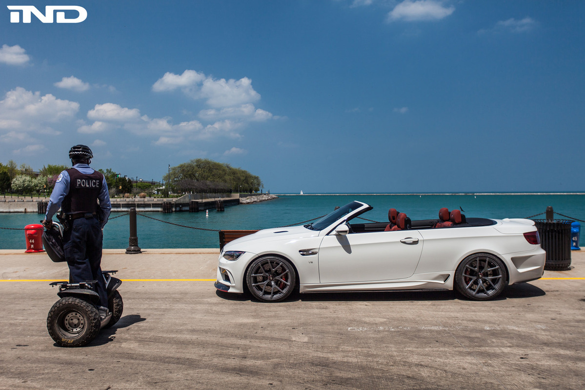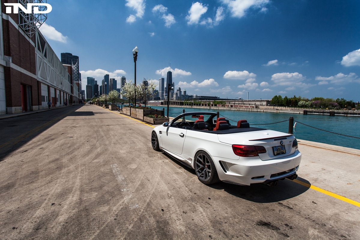 今天帶給各位由改裝廠iND Distribution所操刀的白色塗裝BMW E93 M3敞篷跑車,外觀換上Vorsteiner GTS5版本前保桿、Gintani碳纖維側裙組、開孔式樣後保桿與Vorsteiner Type II後下擾流板等部品,同時將碳纖維前下巴下緣施以紅色處理,呼應酒紅色真皮包覆之原廠運動型座椅。