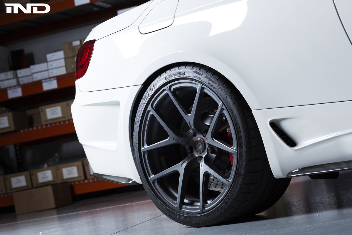 動力部分,iND Distribution維持自然進氣配置,另外換裝Akrapovic鈦合金排氣管與Dinan高性能進氣系統,強化引擎輸出效率,而攸關操控性能的底盤部分則是擁有KW V3高低軟硬可調式避震器組、Brembo GT煞車系統與Vorsteiner、型號VS-110的鍛造輕量化輪圈等精裝套件之加持,功力提升不少。