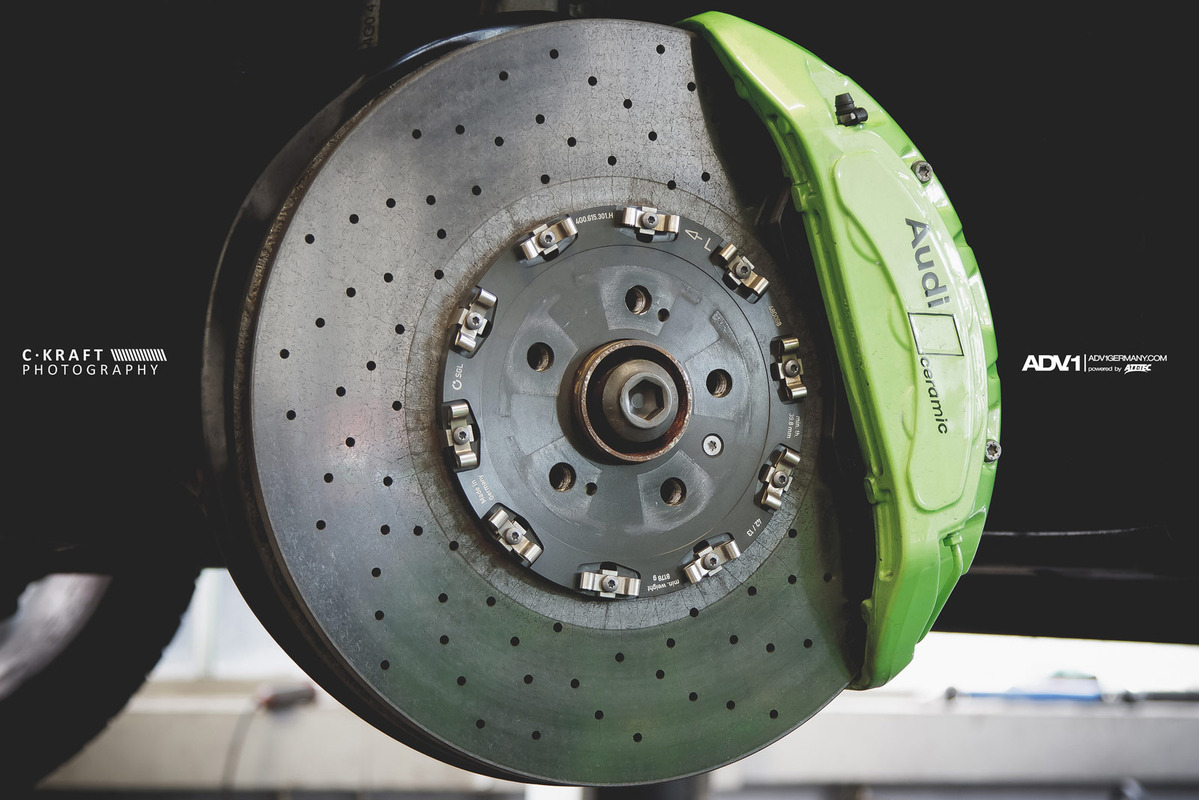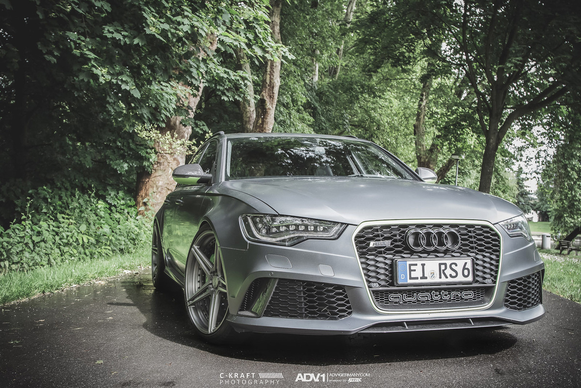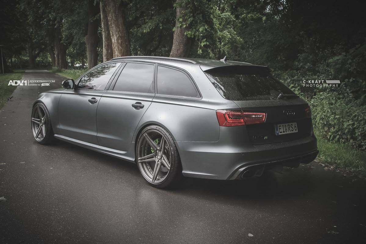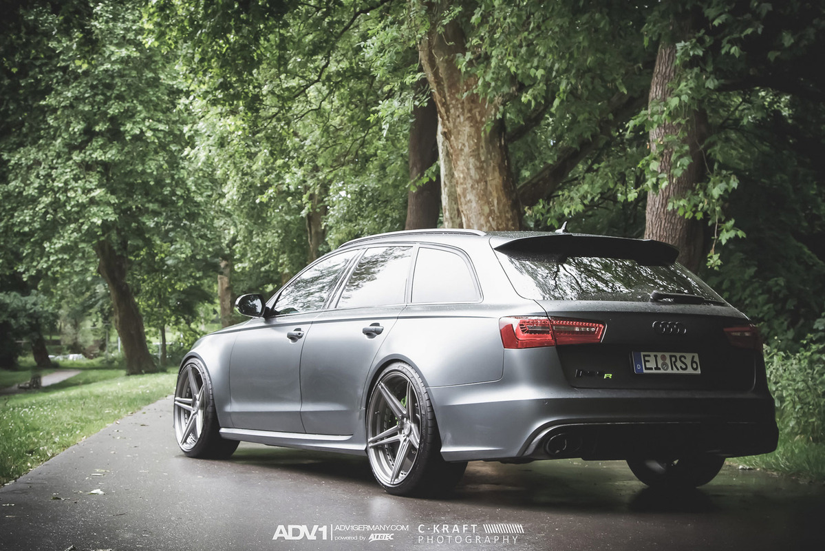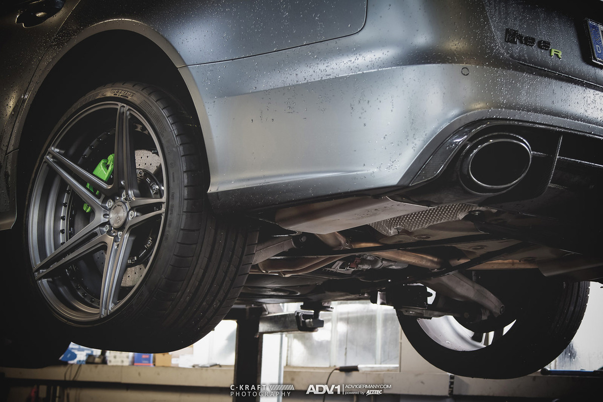 今天帶給各位的是由輪圈品牌ADV.1 Wheels所提供的消光灰色Audi C7 RS6 Avant,換上ADV.1 Wheels、型號ADV05 MV2 SL的輕量化版本輪圈,圈面施以消光槍灰色塗裝,並將水箱罩周邊、後視鏡下緣與原廠AUDI CERAMIC陶瓷碳纖煞車系統的煞車卡鉗等處施以顯眼的亮綠色處理,而為了維護Quattro四輪驅動系統的平衡性,採用前後同為21x10.5J的規格搭配Dunlop高性能跑胎,展現出質感與動感兼具的霸氣風格。