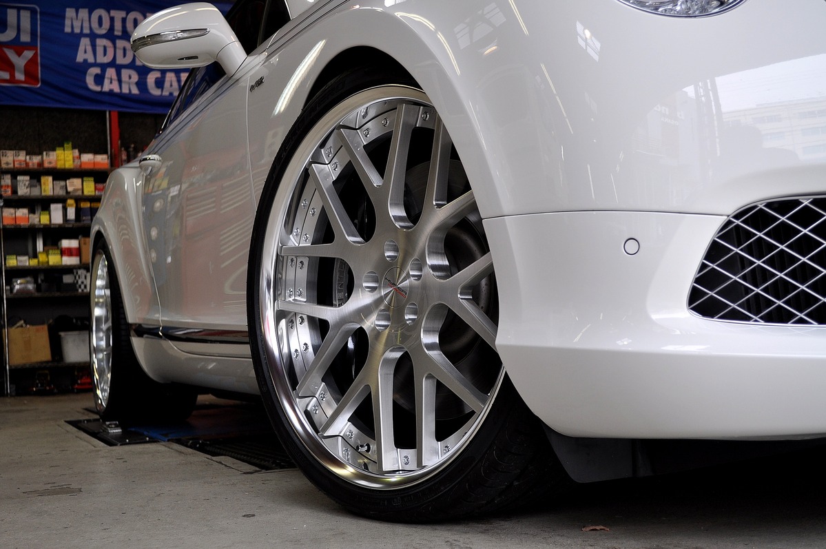 今天帶給各位由日本改裝廠Bond Osaka所操刀的白色塗裝小改款Bentley Continental GT W12,換裝知名品牌Hyper Forged Wheels、型號HF-C7的輕量化22吋輪圈,尺寸為前22x9.5J、後22x11.5J的前後配設定,搭配前265/30R22、後315/25R22的Pirelli P Zero Nero高性能街胎,再透過W12車款專用短彈簧的換裝將車身略為降低,營造出氣質典雅的英倫跑格。