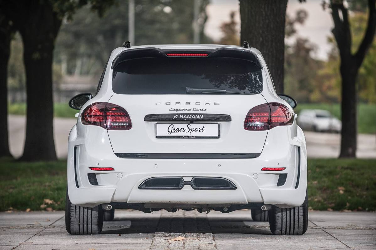 今天帶給各位一部由位於波蘭弗羅茨瓦夫(Wrocław, Poland)的改裝廠GranSport所操刀的白色塗裝Porsche 958 Cayenne Turbo,換裝Hamann Guardian系列、型號EVO的進階版本空力套件,包含前保桿、側裙組、後保桿、碳纖維後上擾流尾翼、後下擾流板與寬車體輪弧套件等,再加上開孔式樣碳纖維引擎蓋、碳纖維後行李箱飾條與型號Unique Forged的槍灰色鍛造輪圈搭配Continental高性能跑胎,輔以造型特殊的排氣管設計,讓這部高性能德國休旅展現出質感卓越的霸氣氛圍。