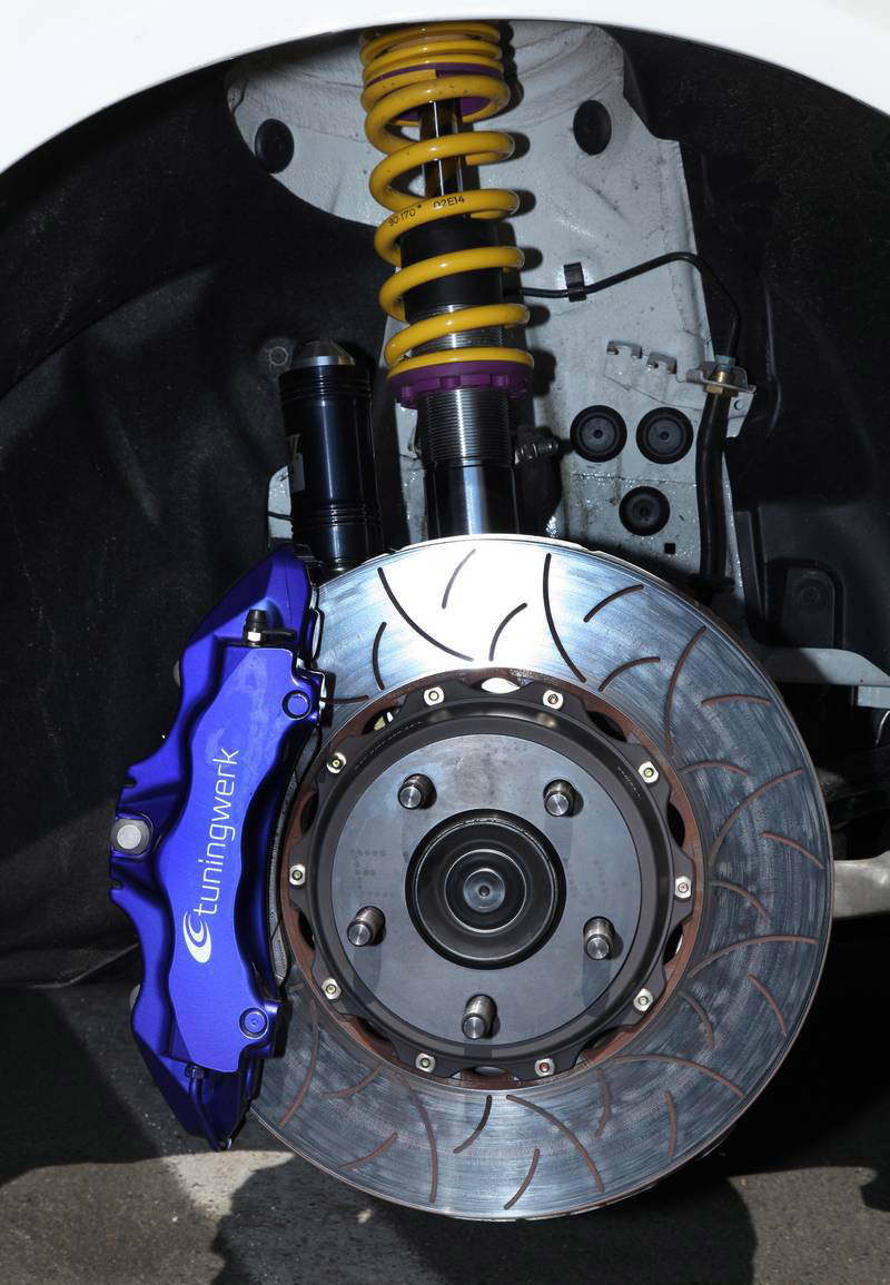 此外,Tuningwerk為其打造前18×8.5、後18×9輪框,搭配前235/40R18、後265/35 R18之Dunlop SportMaxx RT輪胎,寬穩的下盤讓她在操駕上更加穩健。