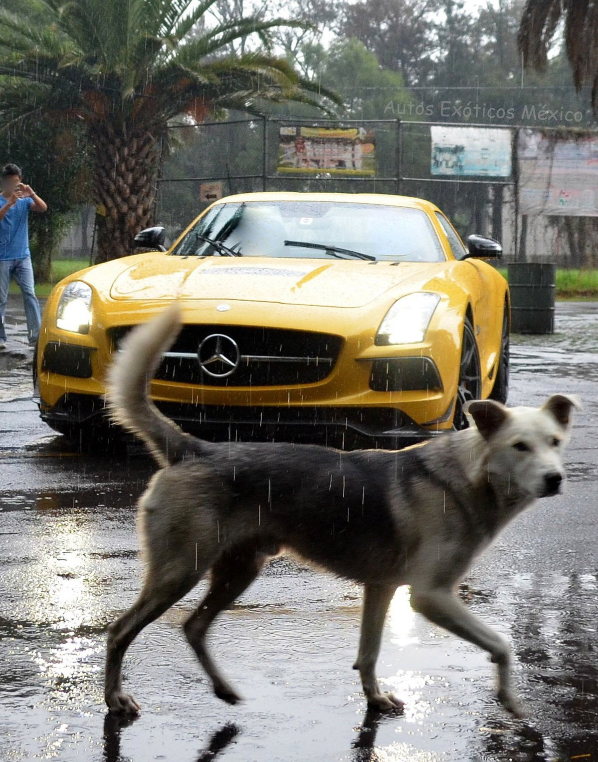 今天帶給各位由攝影專家Daniel Palestino在墨西哥(Mexico)市區擄獲的黃色塗裝Mercedes Benz SLS AMG Black Series,據說在雨中穿梭的它正在前往賽道與Chevrolet Corvette ZR1與Porsche 997 GT3 RS等勁駒較量,不過由於雨勢過大,所以僅帶回它在街頭穿梭的身影。另外,終極版本Mercedes Benz SLS AMG Black Series在墨西哥境內不超過六部,相當稀有。