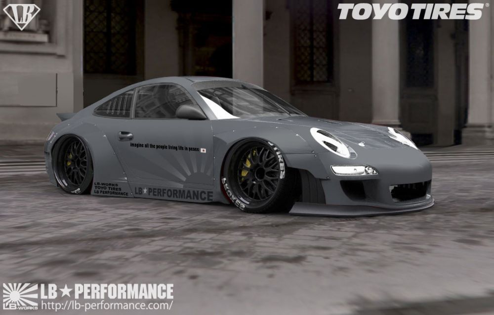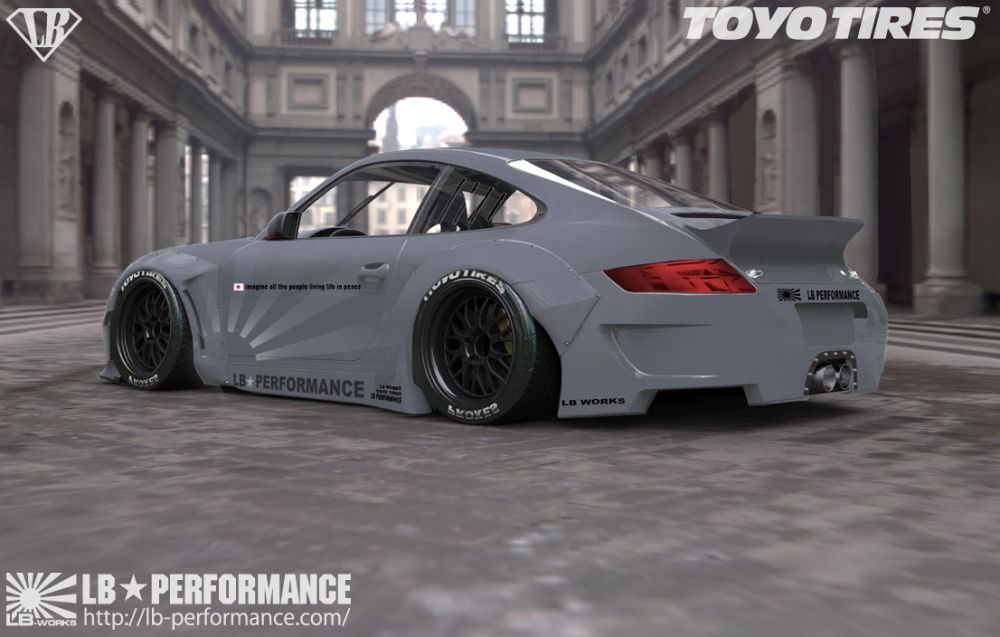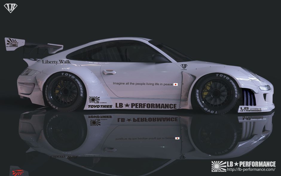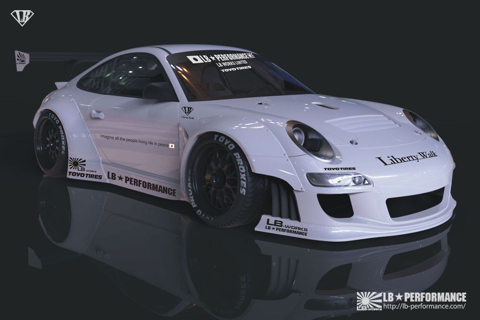 日本(Japan)改裝品牌Liberty Walk Performance ( LB Performance )近年來擁有相當高的人氣指數,著手進行改裝的車款種類持續增加。起初,在他們的作品當中,以寬車體式樣的BMW E92 M3最令人印象深刻,而他們所打造的義大利超級跑車Lamborghini Aventador LP700-4與Lamborghini Murcielago等車款也總是能令人驚艷,前陣子也推出Ferrari 458 Italia與Spider的改裝版本,逐漸朝改裝市場的頂端邁進。當然,身為日本人的他們並不會忘記祖國最引以為傲的Nissan R35 GT-R,而就在成功塑造東瀛戰神與各式超級跑車後,Liberty Walk Performance決定選用Porsche 911為藍圖、打造他們專屬風格的改裝版本,而且還是前代997車型的Porsche 911,而如果沒有意外的話,套件應該適用於MKI前期型或MKII後期型的997 Turbo、GT3、GT2或是Carrera等不同車型。