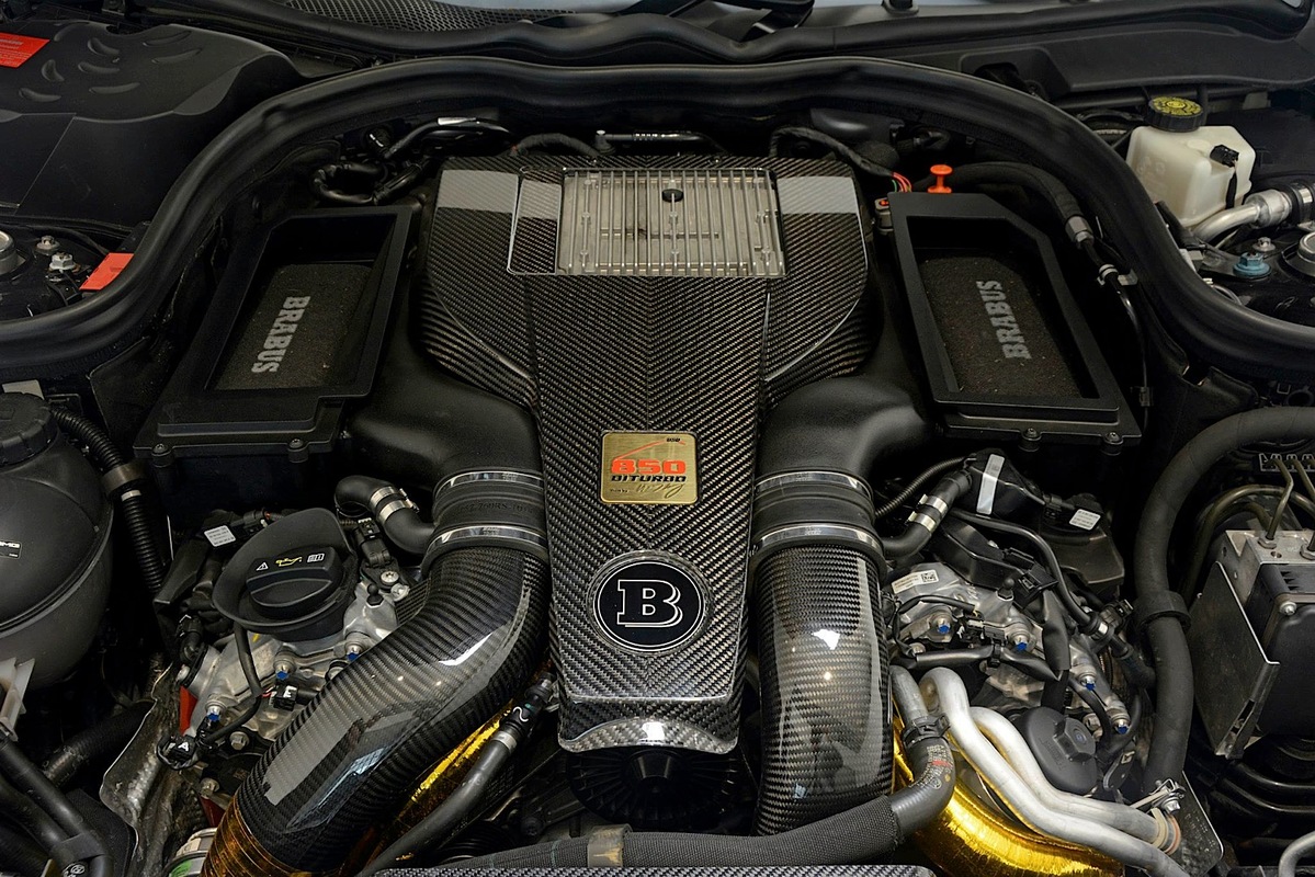 動力部分,Brabus工程師們透過精密分解與重組,將原廠Mercedes Benz CLS63 AMG所擁有的5.5升排氣量提升至5.9升,同時換上尺寸更大的渦輪機,另外編列全新電腦程式、換上直通排氣管、強化冷卻系統,將最大馬力提升至850HP,扭力更達到147.9kgm,使其繳出3.1秒的驚人0-100km/hr衝刺成績,超越Ferrari 458 Italia與Lamborghini Gallardo LP560-4等超級跑車!