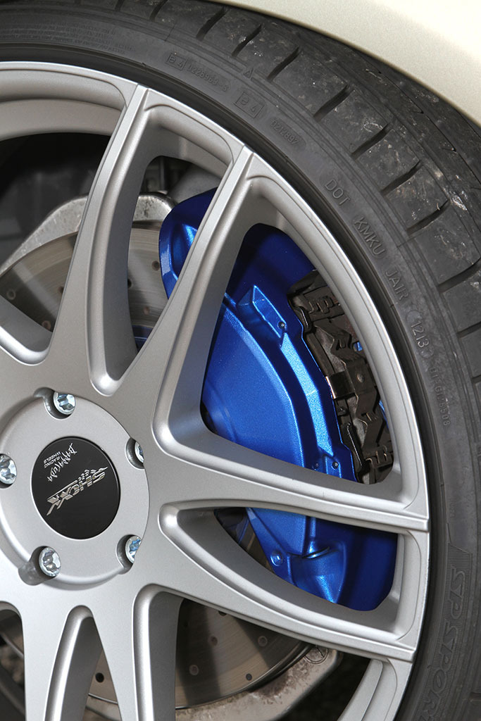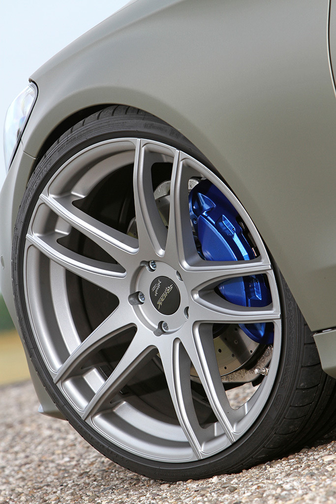 底盤方面,Inden Design為這部Mercedes Benz C180換上來自Barracuda Racing Wheels的輕量化輪圈,尺寸為前20x9J、後20x10.5J的前後配設定,搭配前235/30R20、後275/25R20的Dunlop Sport Maxx高性能跑胎,另外換上運動化短彈簧組將車身降低45mm,而為了讓原廠156HP的動力不至於太過重拖,Inden Design透過電腦程式改寫與進氣系統強化,將最大馬力提升至200HP,一般市區道路堪稱夠用。