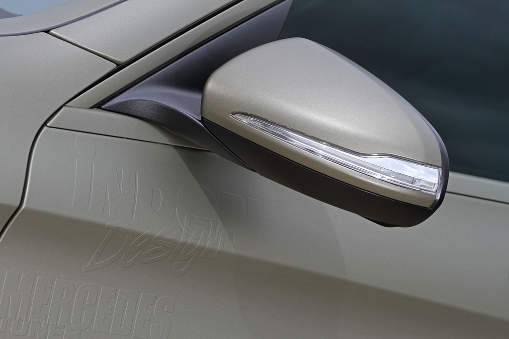 針對代號W205的新款Mercedes Benz C-Class,改裝廠Inden Design有其獨到想法,而且還找來入門版本Mercedes Benz C180進行改裝工程,強調其新穎的視覺化改裝風格。外觀方面,Inden Design換上全車空力套件,包含修改自原廠AMG套件的前保桿、、側裙組與後保桿等部品,再加裝亮面黑色前下巴與流用字C63 AMG Coupe Black Series的四出排氣管尾飾管,另外再與貼膜專業廠Timos Tuning Smithery合作,將全車施以消光金屬灰色包膜,煞車卡鉗則是施以藍色塗裝處理。