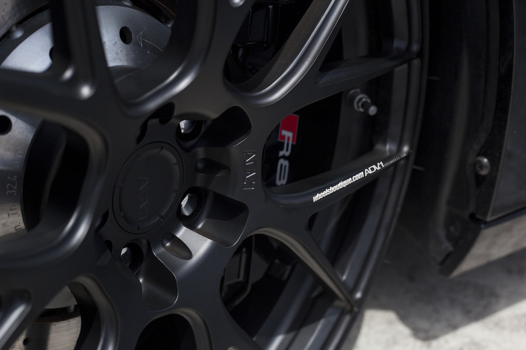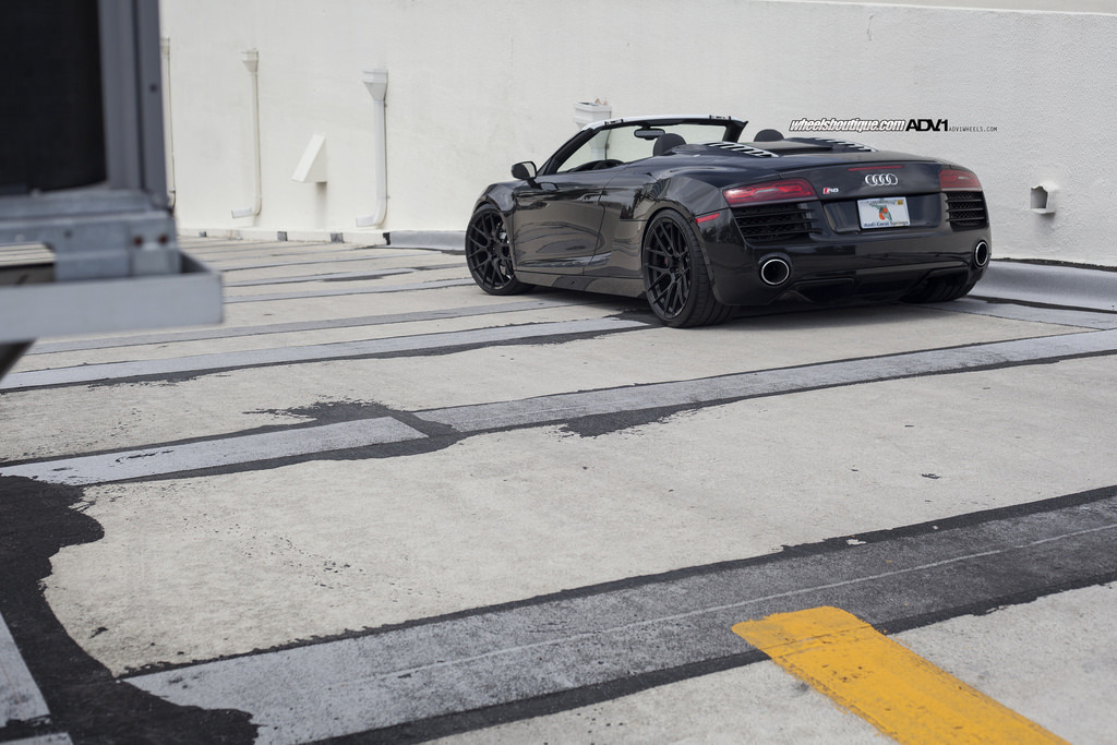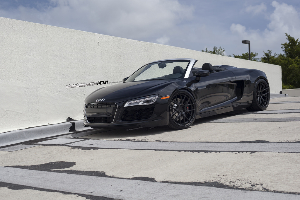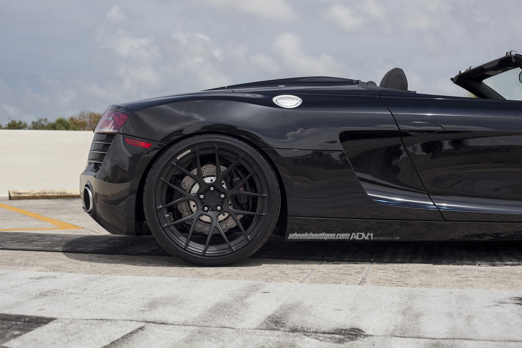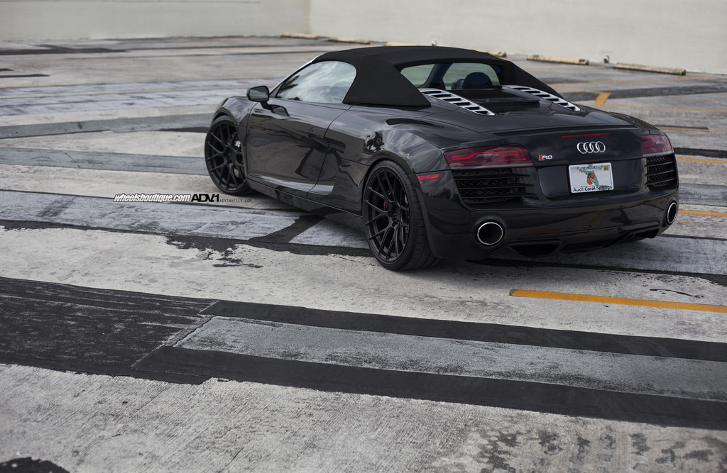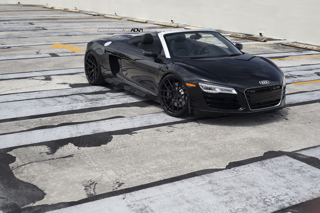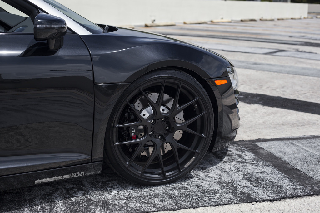 今天帶給各位一部由美國(USA)改裝廠Wheels Boutique所操刀的小改款式樣Audi R8 V8 Spyder,車身採用黑色塗裝搭配亮面銀色處理的A柱,輪圈則選擇知名品牌ADV.1 Wheels出品、型號ADV7 MV1 SL的輕量化黑色款式,另外透過換裝KW V3高低軟硬可調式避震器組將車身降低,在攝影師的專業鏡頭下顯得極具質感,也展現出facelift小改款車型的新穎跑格。