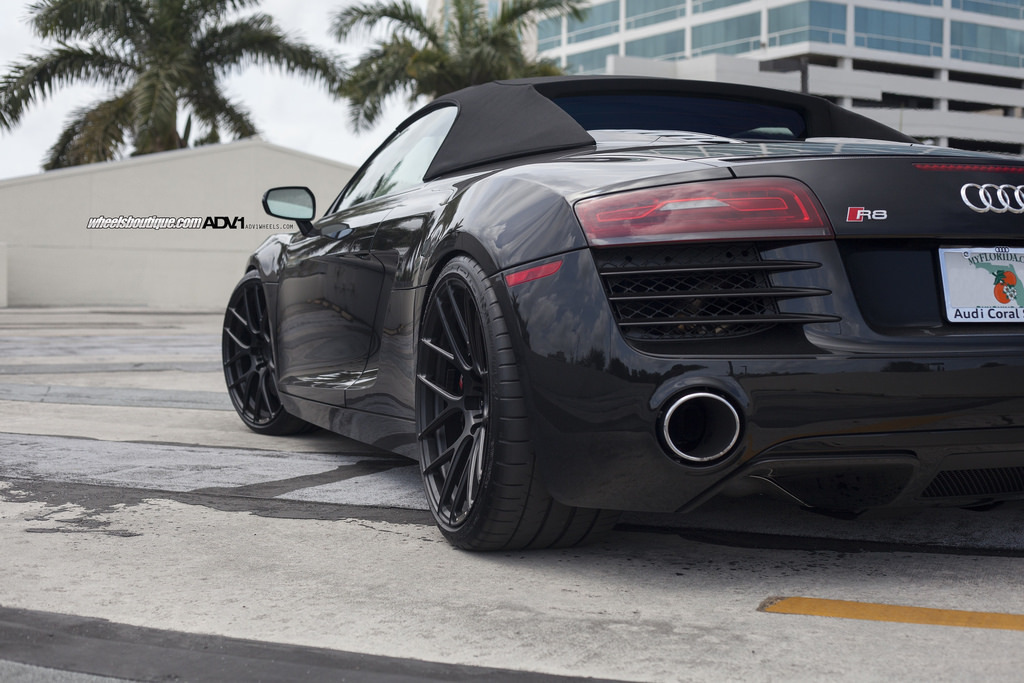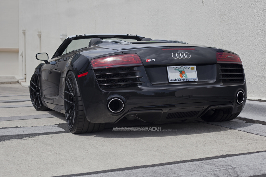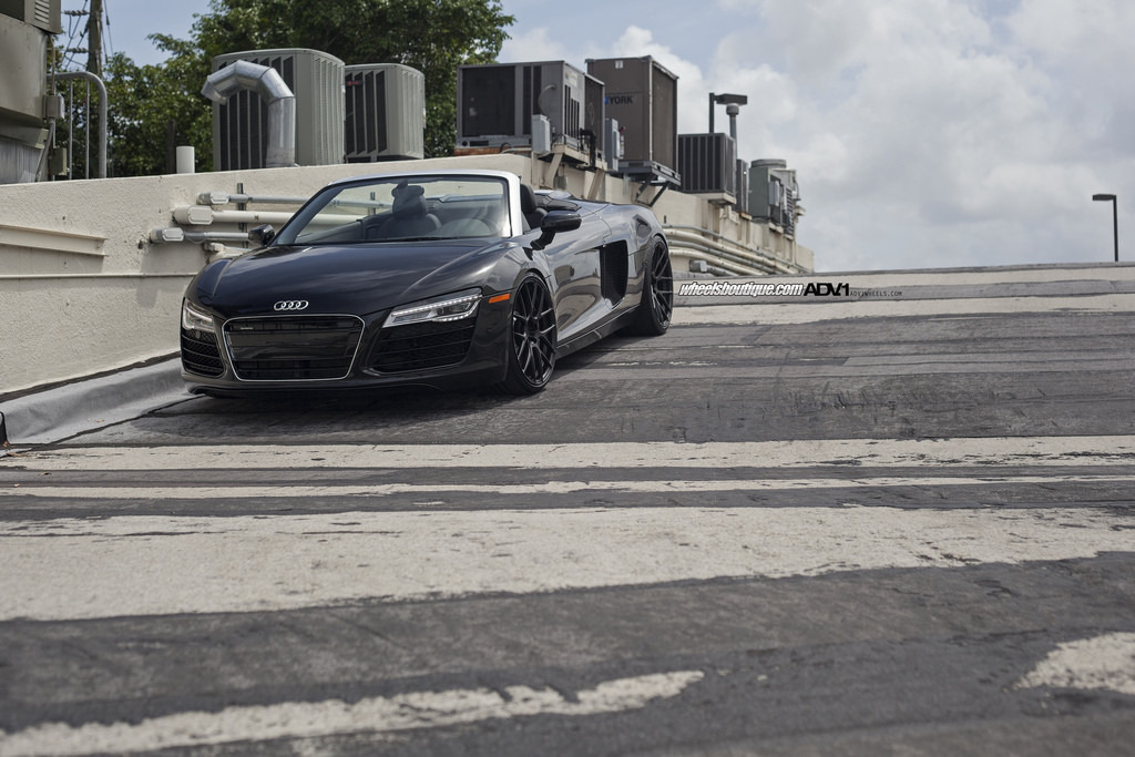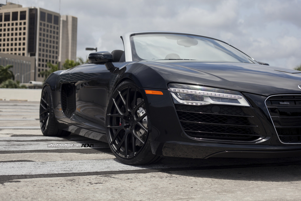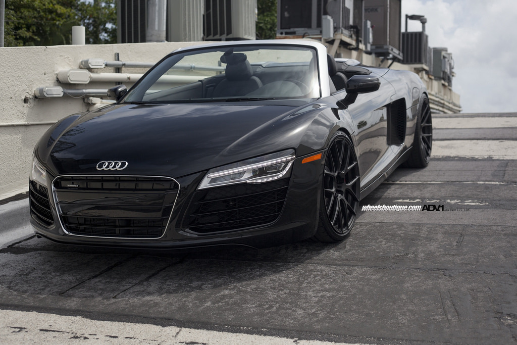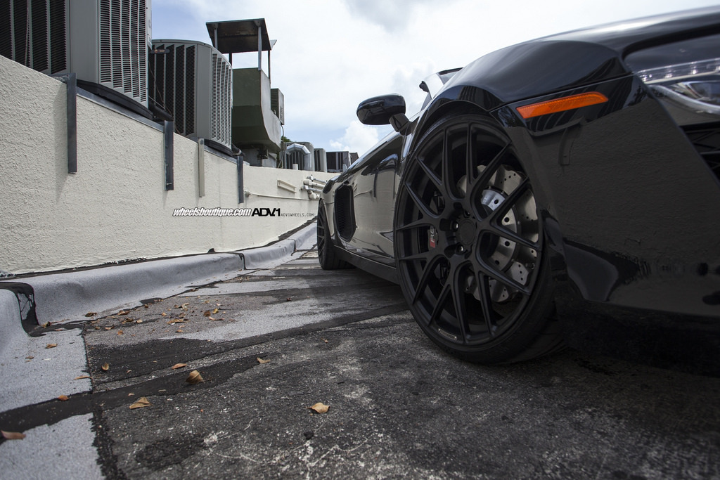今天帶給各位一部由美國(USA)改裝廠Wheels Boutique所操刀的小改款式樣Audi R8 V8 Spyder,車身採用黑色塗裝搭配亮面銀色處理的A柱,輪圈則選擇知名品牌ADV.1 Wheels出品、型號ADV7 MV1 SL的輕量化黑色款式,另外透過換裝KW V3高低軟硬可調式避震器組將車身降低,在攝影師的專業鏡頭下顯得極具質感,也展現出facelift小改款車型的新穎跑格。
