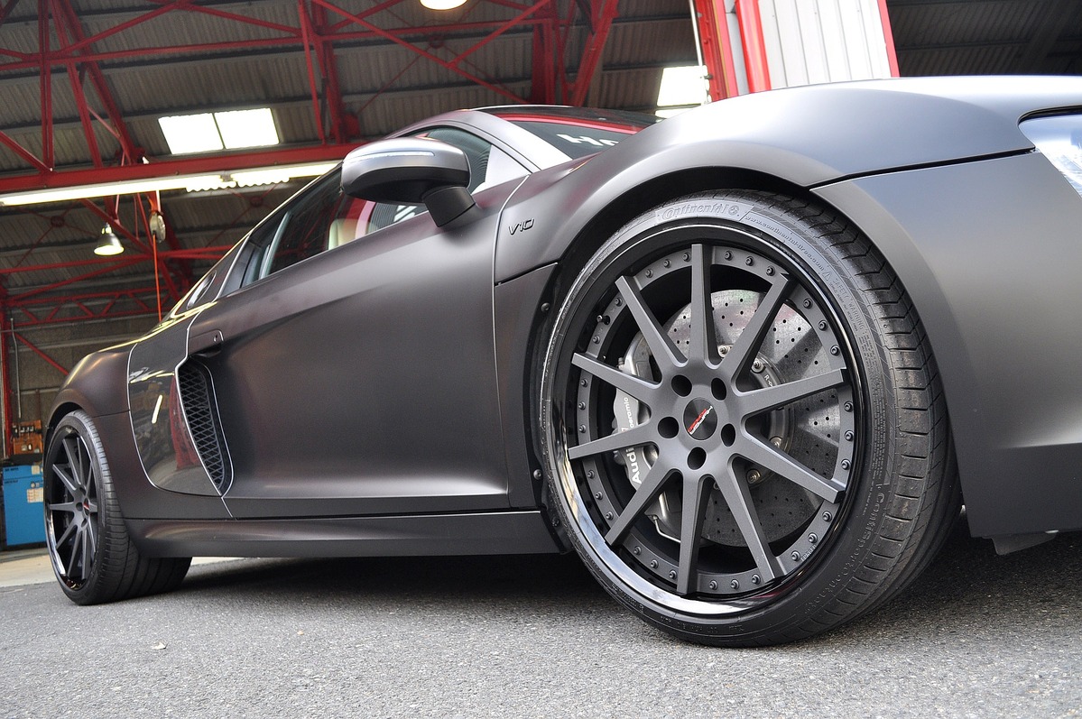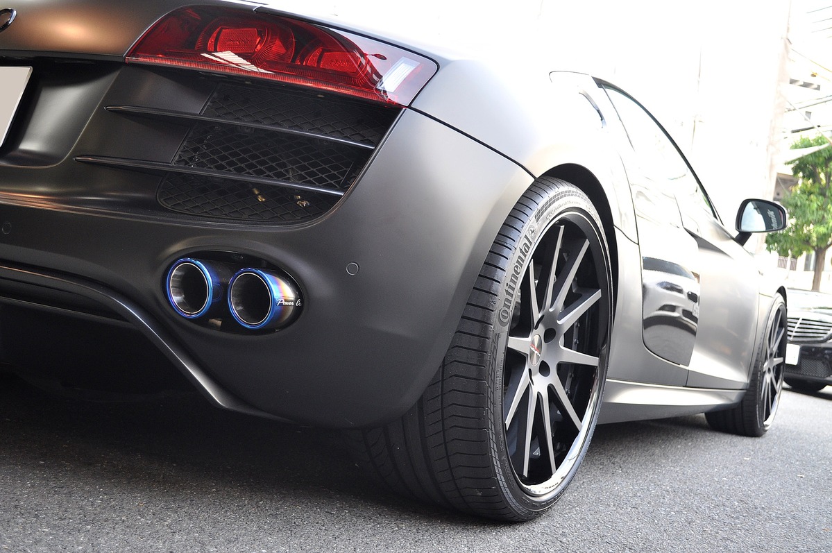 今天帶給各位由日本改裝廠Bond Osaka所操刀的小改款前Audi R8 V10,車身採用消光黑色貼膜,另外換裝知名品牌Hyper Forged Wheels、型號HF-C10的多片式輕量化20吋輪圈,尺寸為前20x9J、後20x12J的前後配設定,搭配前245/30R20、後325/25R20的德國Continental Sport Contact 5P高性能跑胎。動力部分,車主選用Power Craft鈦合金排氣管,除了使得V10自然進氣引擎聲浪變得更為兇猛外,也以四出鈦合金色澤尾飾管成為車尾視覺焦點之一。