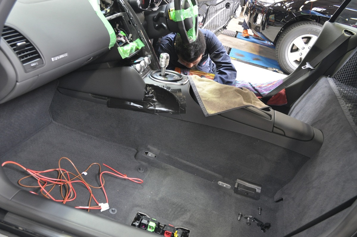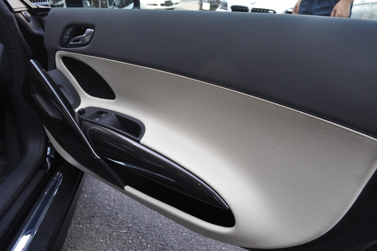 另外,除了外觀方面的更動外,Bond Osaka在內裝部分也下足功夫,除了換上碳纖維方向盤與碳纖維飾板外,也將門板施以局部白色真皮包覆,再搭配來自Recaro的可調式賽車座椅,且為了呼應門板上的黑白皮革配色,也將座椅施以部分菱格紋白色真皮包覆,再更換來自Rockford的擴大機與FLUX的頂級喇叭強化音響輸出表現,完整度宛如出自原廠。