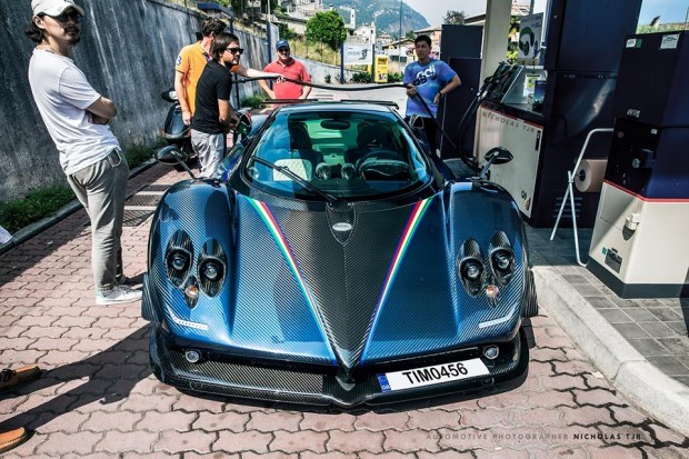 在知名社交平台Instagram當中署名「Tim0456」最近對外表示他的生活沒有依照計畫進行,但也不算太壞。原來,已經擁有一部全球限量五台Pagani Zonda Cinque當中一部的他,最近又提前拿到他的全新Pagani Zonda Tricolore,而這個「意外」也讓他成為世界上少之又少、同時擁有兩部Pagani車款的人之一。姑且不論Tim的財富或身家背景,居住在新加坡(Singapore)的他對於這間義大利超跑車廠有高度熱忱,更讓Pagani創辦人Horacio Pagani親臨交車現場,為他掀開Pagani Zonda Tricolore的車罩。他所拿到的這部Pagani Zonda Tricolore比原本就擁有的Zonda Cinque更為稀有,全球僅有三部,且都採用左駕設計。因此,他這部編號為「1」的限量超級跑車是沒辦法在新加坡合法掛牌,因為當地僅允許右駕車領牌上路。不過,由網友所拍到的照片顯示,Tim還是很大膽地貼著號碼為「TIM0456」、疑似於英國領取的車牌、在新加坡路上行駛,還跑去加油站補充這部猛獸的燃料。