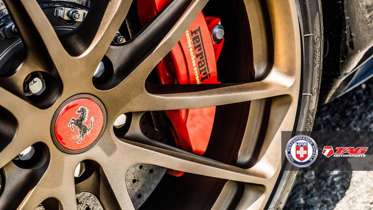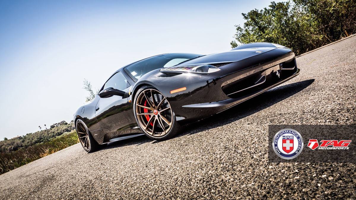 今天帶給各位一部由改裝廠TAG Motorsport所操刀的黑色塗裝Ferrari 458 Italia,換裝知名品牌HRE Performance Wheels、型號P104的消光銅色塗裝輪圈,同時用上紅底Ferrari輪圈中心蓋呼應紅色塗裝的原廠煞車卡前,再透過高低軟硬可調式避震器組的換裝,將車身降低,展現出黑色Ferrari 458 Italia特有的神秘跑格。