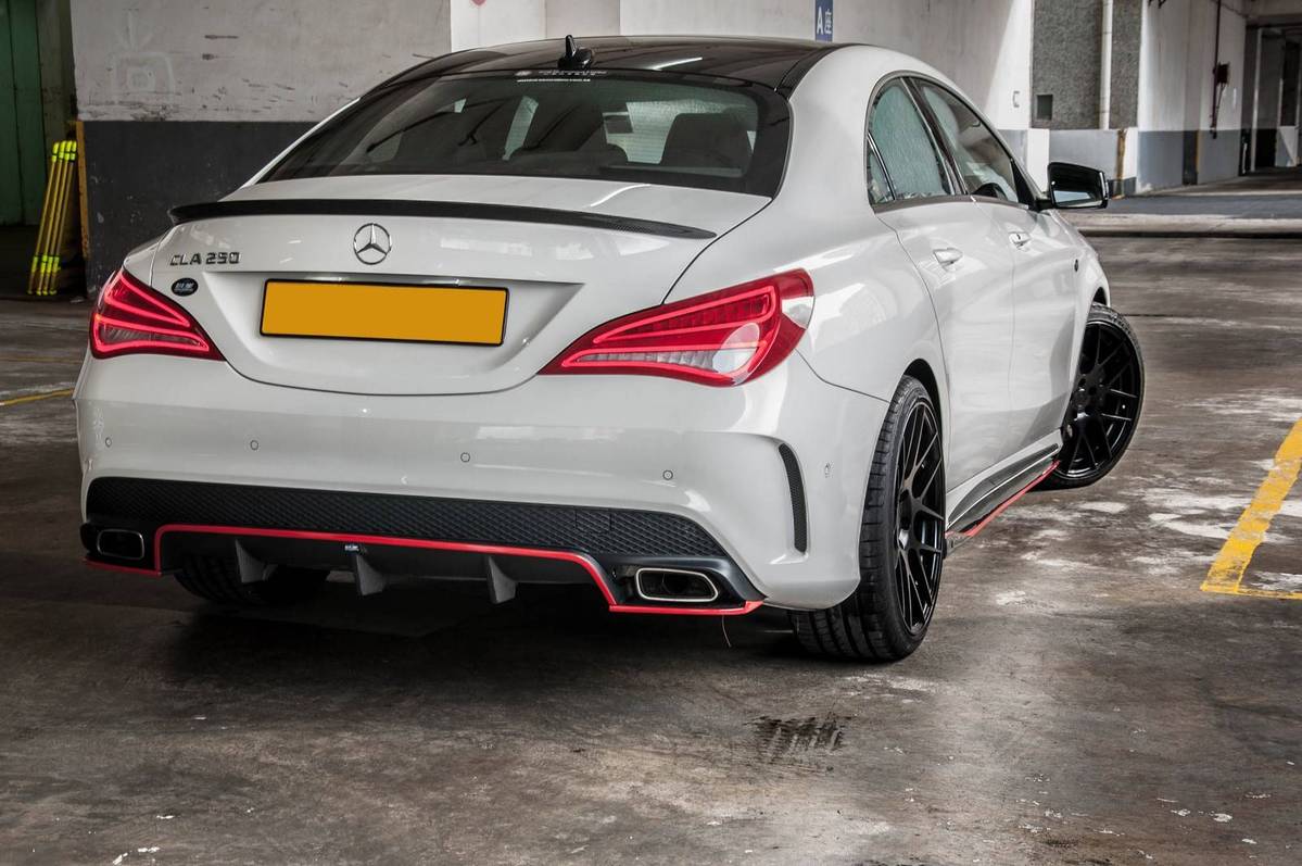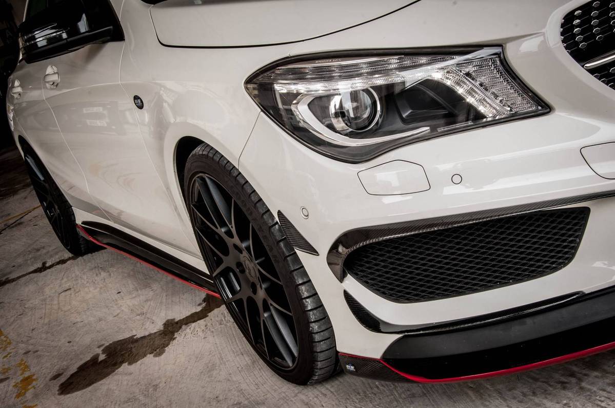 香港改裝品牌RevoZport近年來曝光度大幅度提升,而其提供的套件範圍相當廣泛,從熱門改裝車款到高價超級跑車都有,包含熱銷鋼砲Volkswagen Golf GTI、六速手排鋼砲BMW 1M Coupe、東瀛戰神Nissan R35 GT-R與義大利旗艦超跑Ferrari F12 Berlinetta等吸睛車款,而今天帶給各位的是一部剛步出RevoZport改裝廠的白色塗裝Mercedes Benz CLA-Class。改裝廠RevoZport將這部完整改裝版本CLA取名「RevoZport CLA290」,空力套件包含碳纖維前定風翼、前下巴、側裙組、後下擾流板與後擾流鴨尾翼等部品,同時以鮮紅色飾條環繞全車,與白色車身搭配得宜。