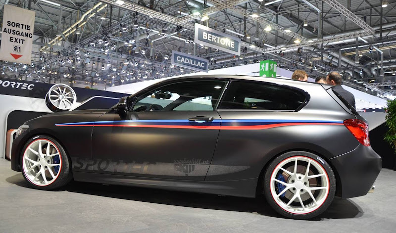 然而,他們這次把觸角伸到BMW 135i上面。在日內瓦車展上,Sportec發表這台BMW 135i三門掀背車款,原廠即配有M款套件,採用消光黑色塗裝。