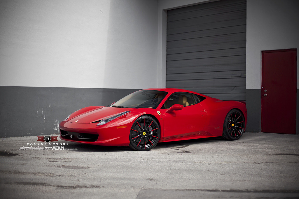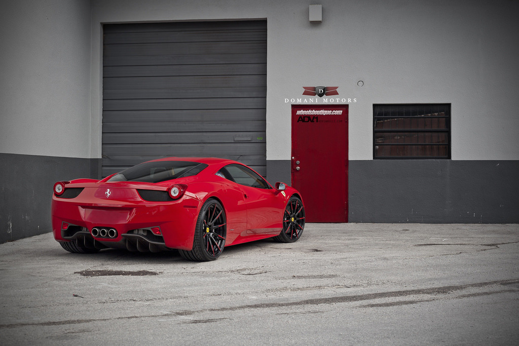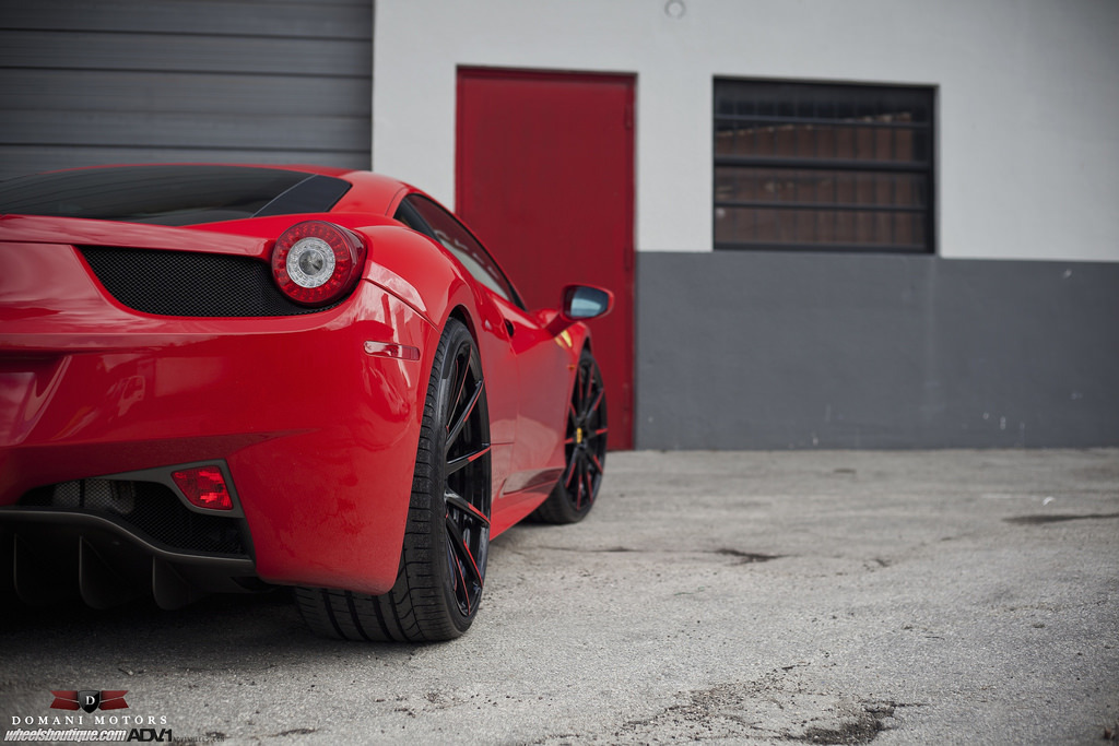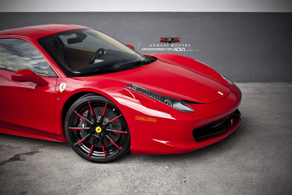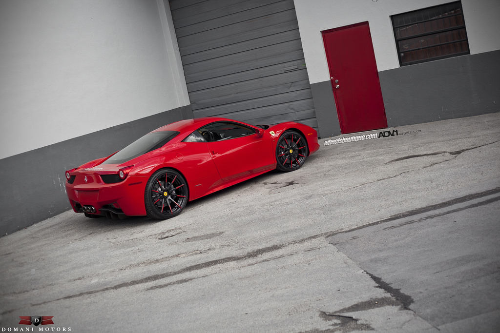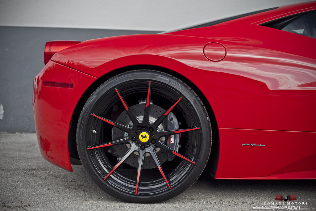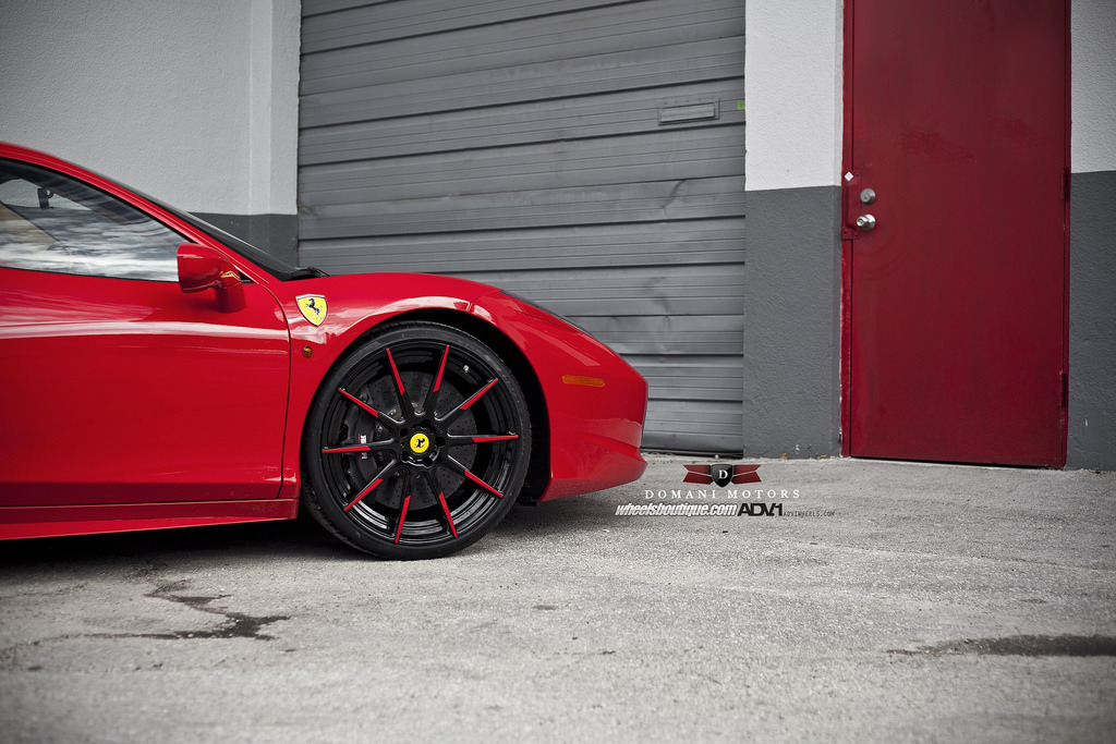 今天帶給各位一部由改裝廠Wheels Boutique所操刀的紅色塗裝Ferrari 458 Italia,換裝知名品牌ADV.1 Wheels、型號ADV10 MV2的放射狀輕量化輪圈,圈面主體以黑色烤漆處理,另在細爪末端施以與車身相同的紅色塗裝,搭配Ferrari原廠輪圈中心蓋與灰底白字的煞車卡鉗,再透過高低軟硬可調式避震器組的換裝,將車身降低,展現出奔放熱情的動感跑格。