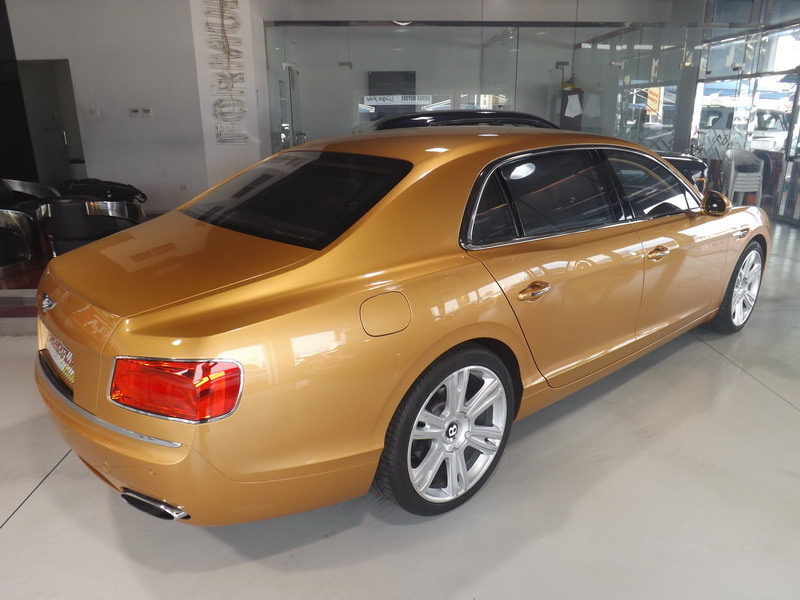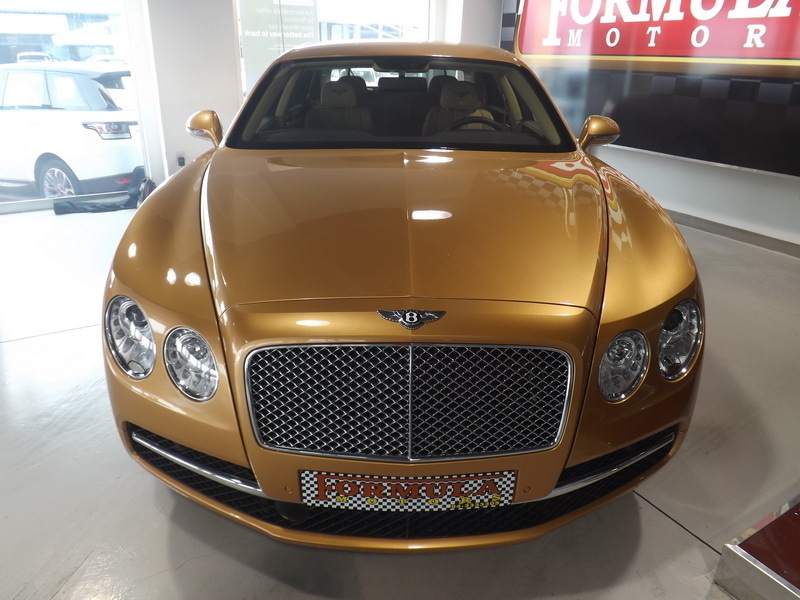 今天帶給各位一部由杜拜(Dubai)知名頂級車商Formula Motors所持有的Bentley Flying Spur 6.0 W12,車身採用相當罕見的金色塗裝,搭配深藍色與米白色交織而成的雙色真皮內裝,在眾多黑色、白色或鐵灰色Flying Spur當中顯得獨樹一格。目前這部2014年款式的Bentley Flying Spur 6.0 W12僅行駛6,000公里,開出86.9萬AED的售價讓出。姑且不論喜不喜歡這種顏色,但是這部金光閃閃的Bentley Flying Spur 6.0 W12開在路上絕對是目光焦點!