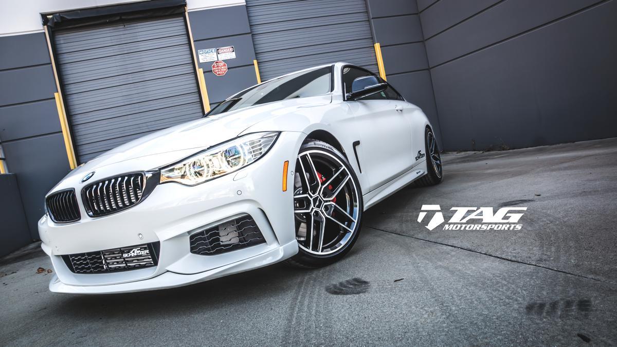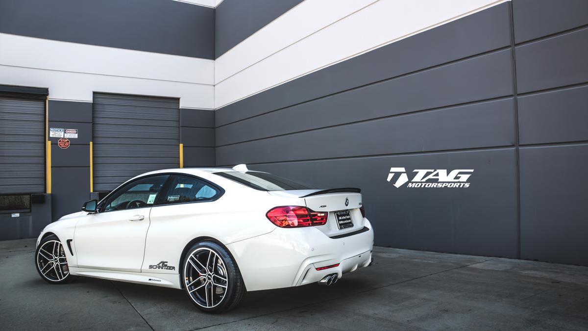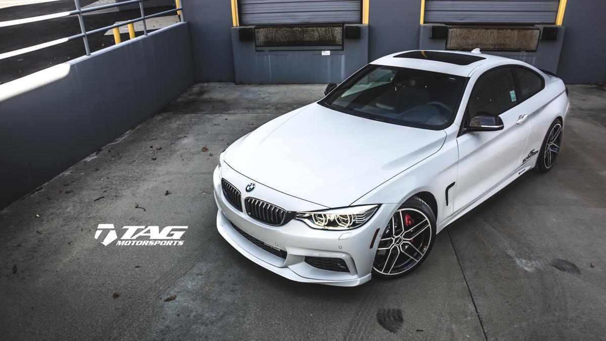 就改裝範圍中的外觀部分來說,知名品牌AC Schnitzer鮮少有BMW玩家不認識,而他們日前將BMW F32 435i的專用部品配送至美國改裝廠TAG Motorsports並且已替顧客安裝完成,趕緊與各位分享。整組套件取名「ACS4」,包含全車空力套件、排氣管與輪圈等部品,其中有M Sport前保桿專用前下巴、後下擾流板、側裙修飾套件與品牌字標等,輪圈則為AC Schnitzer Type VIII雙色版本,尺寸為前19x8.5J、後19x9.5J的前後配規格。另外,TAG Motorsports也為這部白色塗裝BMW F32 435i換上同樣來自AC Schnitzer的短彈簧,將車身降低。