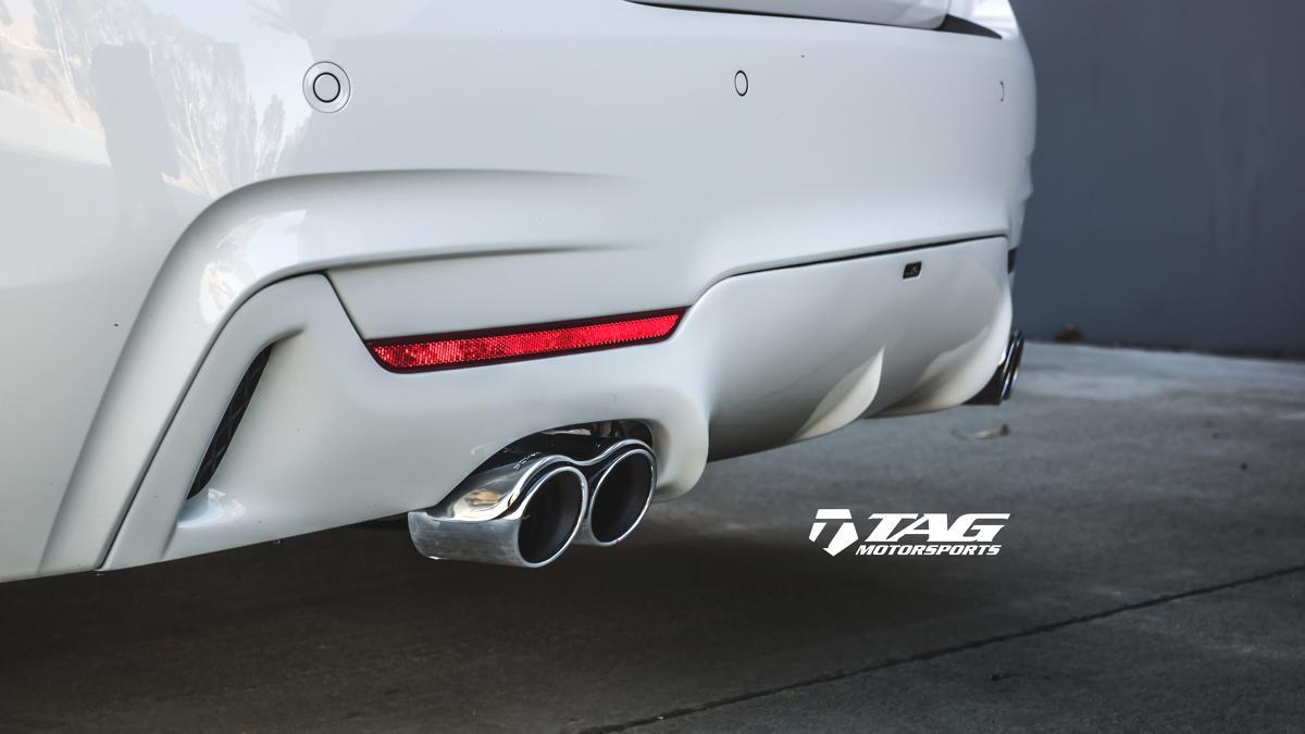 動力部分,原廠BMW F32 435i搭載3.0升Twin Power Turbo雙渦輪增壓、直列六缸引擎,在轉速5,800rpm時能提供之最大馬力為306HP,扭力峰值40.8kgm則於1,200rpm便湧現,輔以八速手自排變速箱,百里加速衝刺僅需5.1秒便可完成,一般道路已足敷使用,然而TAG Motorsports透過電腦程式改寫與AC Schnitzer排氣管的換裝,將最大馬力提升至360HP,扭力則來到51.1kgm的境界,使得百里加速成績挺進至4.7秒,進步幅度相當明顯。