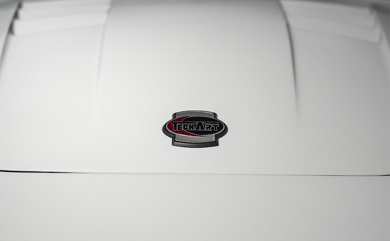 Techart這組空力套件,部分由碳纖維製成,其餘則善用玻璃纖維的特性,並且使用寬車體設計將車身線條修飾完美。前保桿的部分,提供這台跑旅車的引擎室與剎車碟盤更多新鮮空氣,並且附有摩登感的LED日行燈。引擎蓋採用兩排開孔式設計,猶如鯊魚的側鰓,殺氣騰騰。輪圈方面,使用Techart五爪多片式鉚釘輪圈,並且在最外圈滾上白邊,形成黑白對比的視覺美感。車尾部分,上翹式尾翼繪出視覺尾端的完美句點。