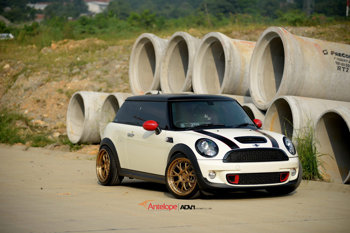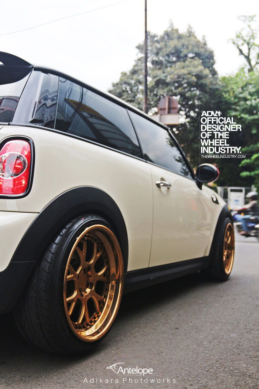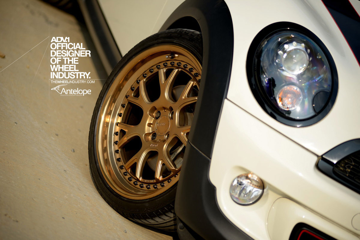 即使在F世代全新Mini車系已經問世後,R56世代的Mini依然頗受改裝車迷的歡迎,今天帶給各位的則是由改裝廠Antelope Ban所操刀的乳白色塗裝R56 Mini Cooper S,引擎蓋與後行李箱蓋貼有黑色紅邊的車身飾條,並將後視鏡蓋與前後保桿氣壩局部施以紅色處理,輪圈則是選用由ADV.1 Wheels特別訂製的4孔100規格產品,型號為ADV7 TF SL,尺寸為前18x8.5J、後18x9.5J,圈面採用消光與拋光兩種銅色塗裝交織而成,讓這部Mini Cooper S即使沒有原廠JCW空力套件的加持,也顯得獨具風格。
