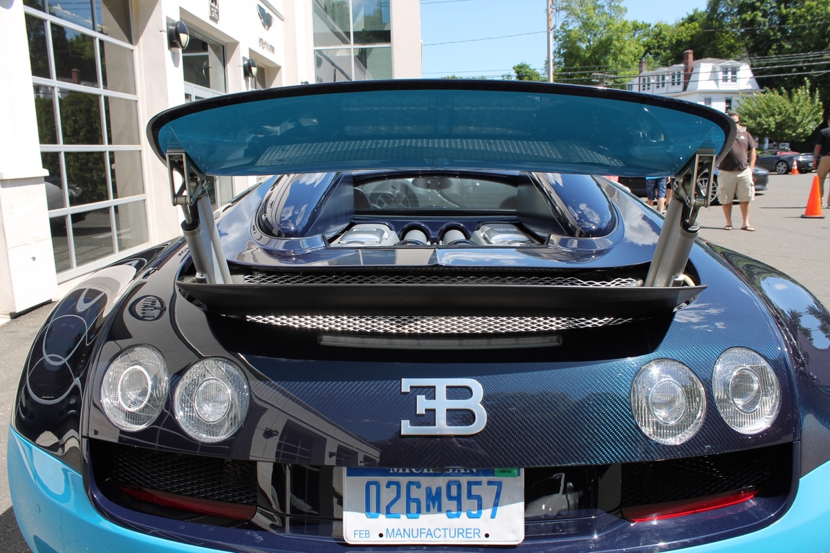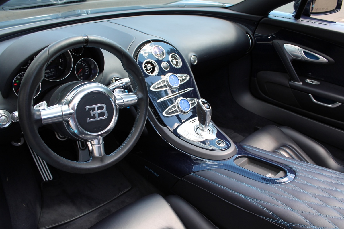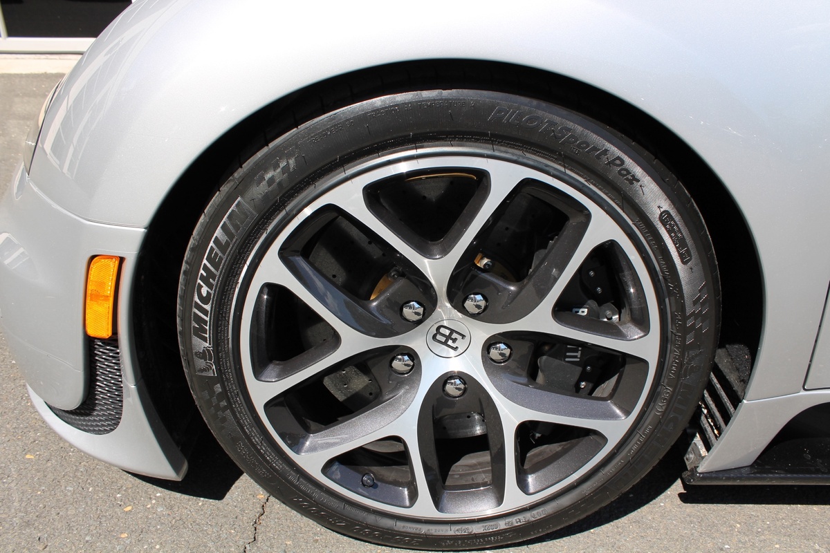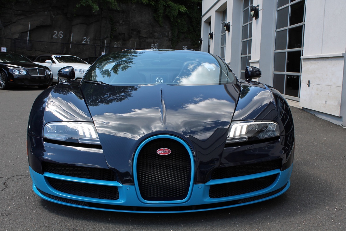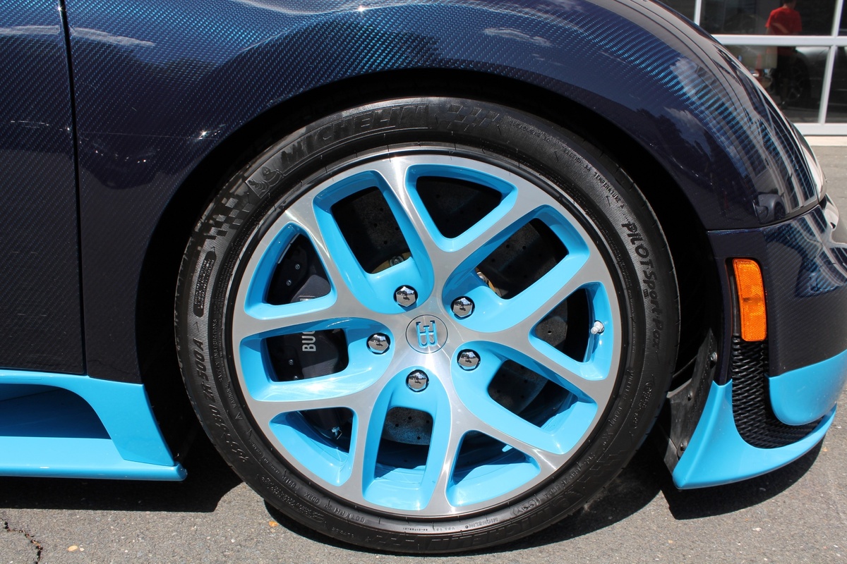 另外一部Bugatti Veyron Grand Sport Vitesse則是與出現在電影變形金剛四(Transformers 4)當中的雷同,採用深淺兩種藍色交織而成的特殊塗裝,唯獨深藍色部分為碳纖維紋路,而該部2012年出廠的Veyron Grand Sport Vitesse在過去曾擔任Bugatti經銷商的試乘車與公關活動用車,因此在它僅兩年的生命中,里程數便累積了1.5萬英里,以這類超級跑車來說,算是相當高。