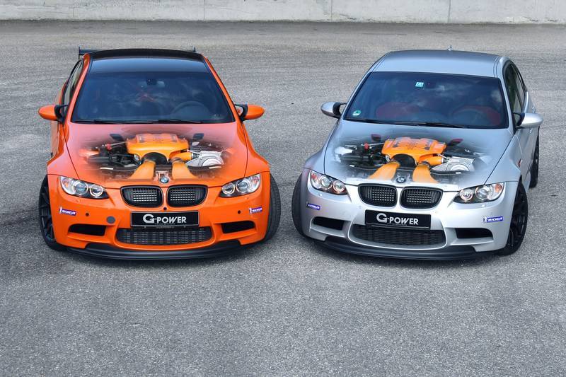 BMW E92 M3 GTS與E90 M3 CRT在步出BMW德國原廠時,便與普通版本E9X M3有所不同,植入引擎室內的並非4.0升V8自然進氣引擎,而是排氣量更大的4.4升V8自然進氣引擎,最大馬力為450HP,堪稱史上最強自然進氣版本M3。再者,雙門版本M3 GTS與四門版本M3 CRT分別僅限量生產250部與67部,相當稀有,但是經驗豐富的G-Power絕對不會捨不得動手改造。動力部分,G-Power替這兩部限量紀念版本M3換上來自ASA的機械增壓系統,再透過電腦程式改寫與進排氣系統強化,將最大馬力提升至650HP,扭力峰值增強至64.3kgm,使得百里加速雙雙繳出4.1秒的絕佳成績、由靜止加速至時速200km/hr也只需11.8秒、極速則為323km/hr,已屬超級跑車等級的表現!