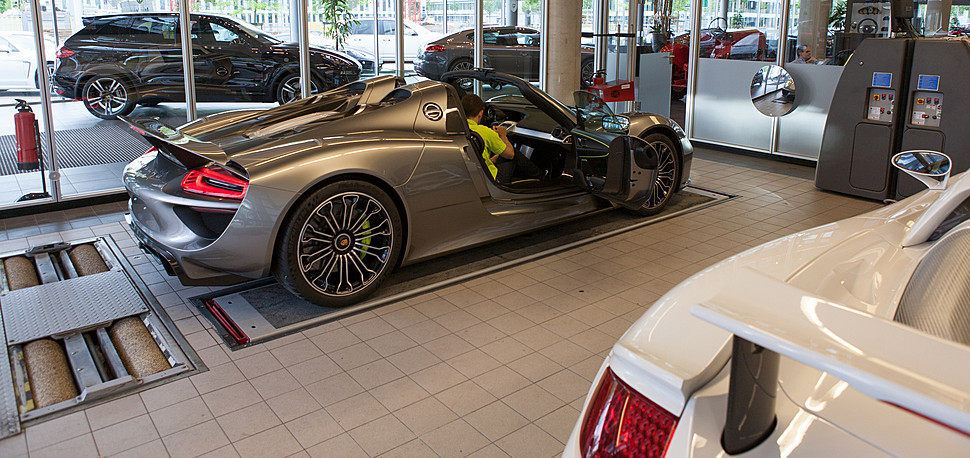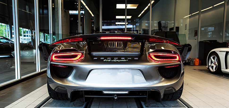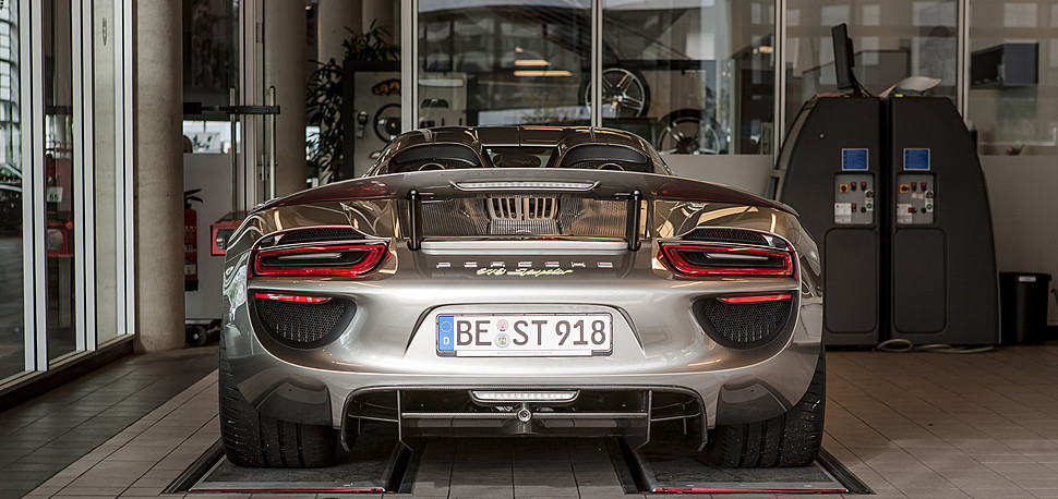 面對分別來自義大利與英國的Ferrari LaFerrari與McLaren P1兩部強悍油電混合超級跑車來襲,德國車廠祭出全新Porsche 918 Spyder,斯圖加特(Stuttgart)的工程師們不僅將4.6升V8引擎調校到極致,另外在前軸與後軸分別裝上一顆電動馬達,並且能夠切換獨立或合力運作等模式,達到887HP的最大綜效馬力值,改良型的Porsche Doppel Kupplung (PDK)七速雙離合器變速箱則是擔綱後輪的動力傳輸。 進階版本的Porsche 918 Spyder配有原裝Weissach Package運動套件,在原廠施以輕量化工程而減重36公斤、配有鋁鎂合金輪圈、部分鈦合金材質煞車系統與碳纖維拉桿的助益下,百里加速僅需2.6秒便可完成,較普通版本快上0.2秒,由靜止加速至時速200km/hr也僅需7.2秒(較普通版本快0.5秒)、衝刺到時速300km/hr也僅需19.9秒(比普通版本快2.1秒),顯然是預算足夠的買家必定選配的高性能套件。同時,於德國紐柏林賽道(Nurburgring Nordschleife)創下6分57秒佳績便是一部配有Weissach Package的Porsche 918 Spyder,相當強悍。