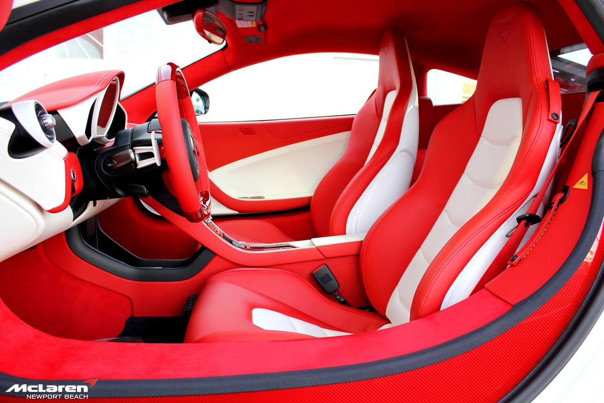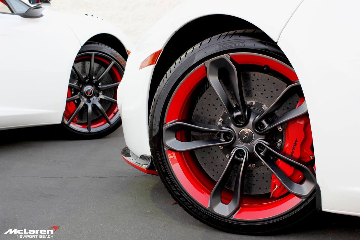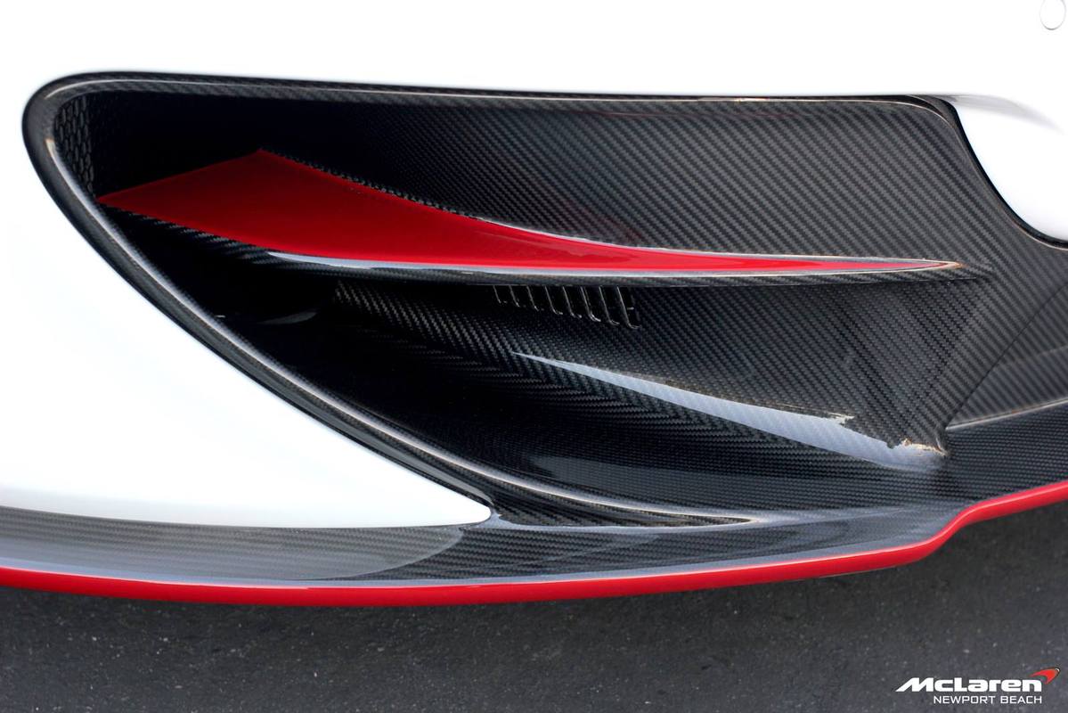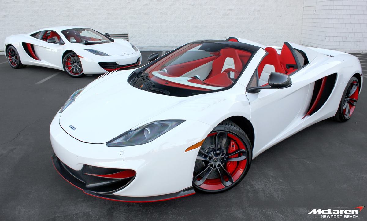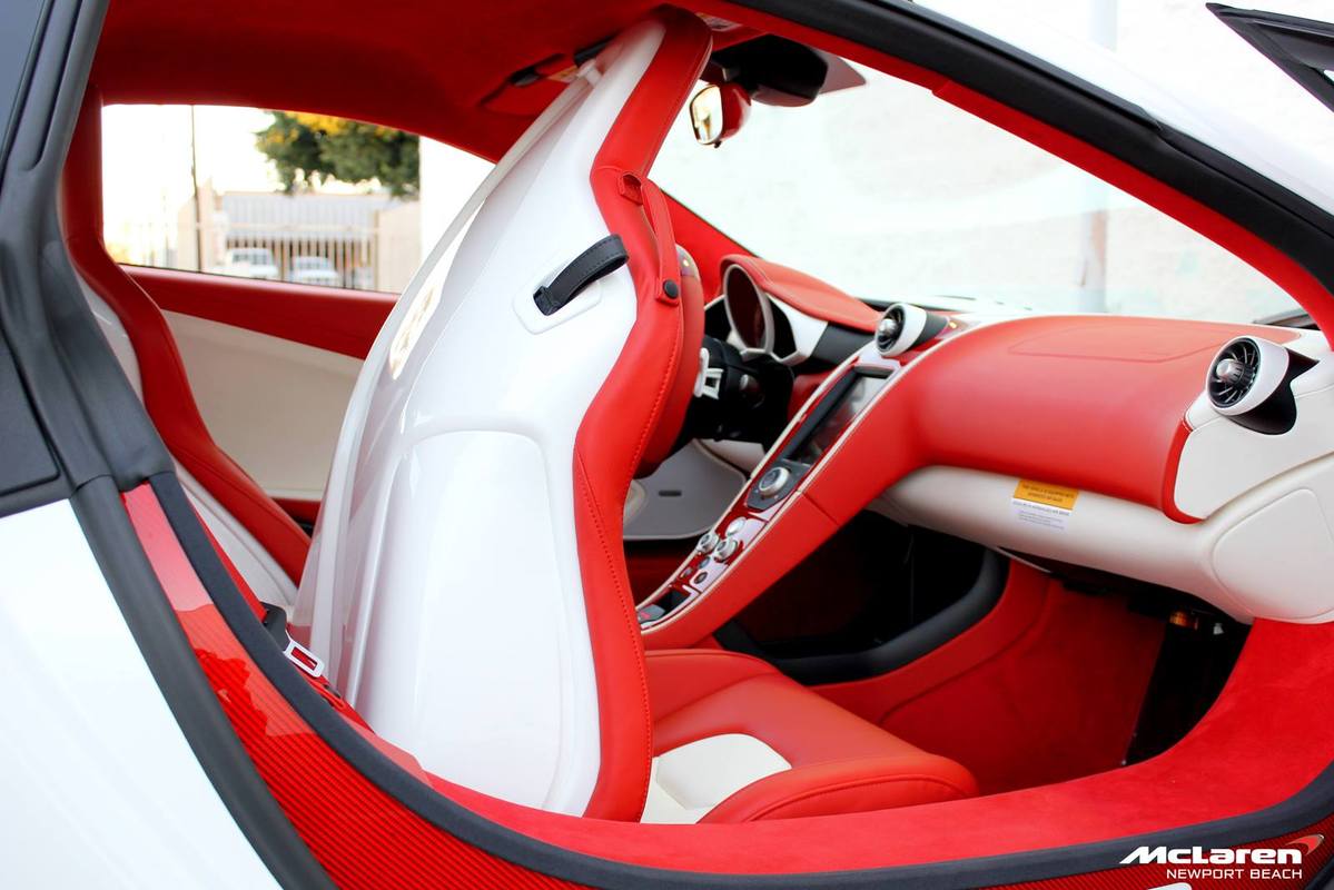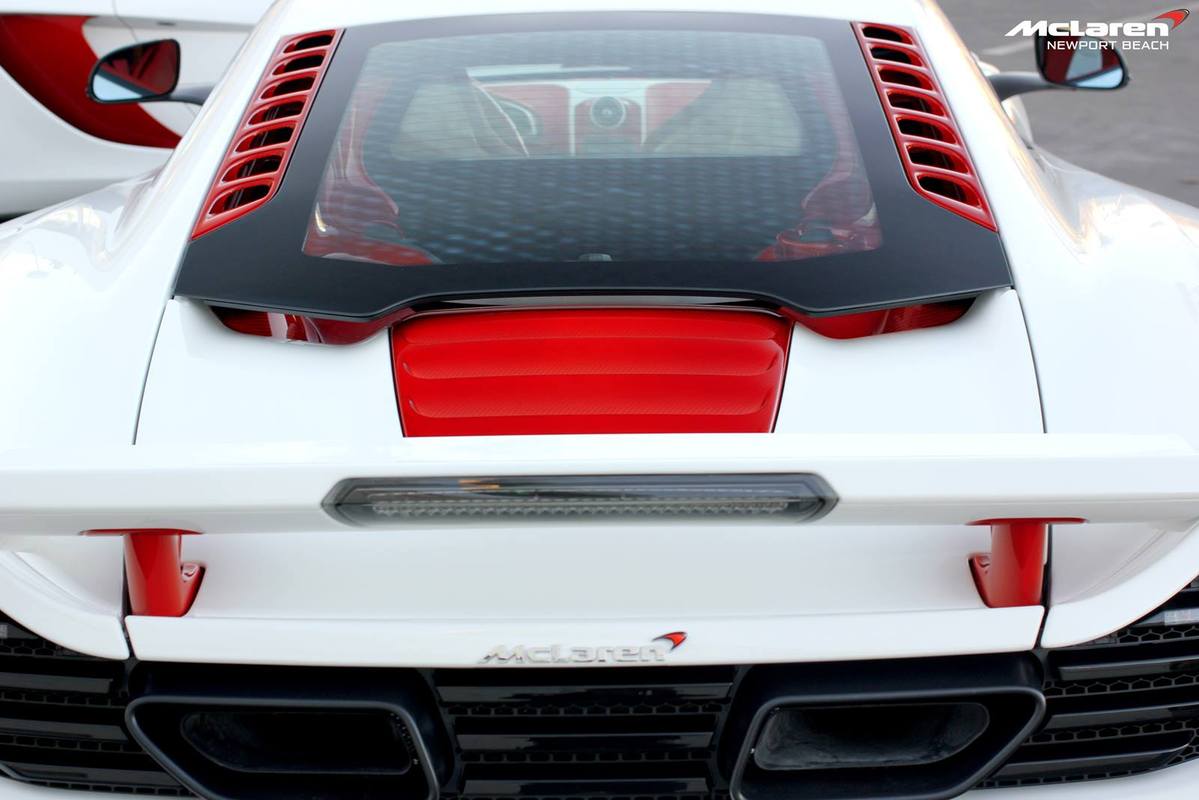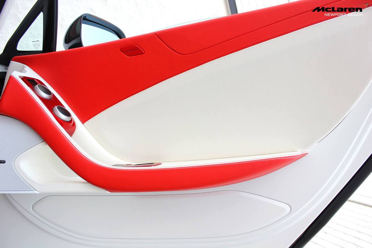 外觀方面,兩部McLaren 12C皆採用Extreme White淨白色塗裝搭配大量碳纖維套件,其中引擎室護板、前下巴、後下擾流板、後引擎蓋周邊飾板與B柱蓋板等處皆以罕見的紅色碳纖維部品妝點,與白色車身搭配,營造出極為特殊的視覺效果。內裝部分更是呼應外觀上的大膽組合,除了於頂棚、後艙置物空間與地毯等處用上頂級紅色麂皮包覆外,其餘則以白色真皮包覆,另外搭配紅色車縫線與多處紅色碳纖維飾板,方向盤則是以紅黑雙色透氣真皮搭配紅色碳纖維材質,同時選配有衛星導航、IRIS音響升級套件與全功能電動座椅等精裝部品,竭盡奢華之能事。